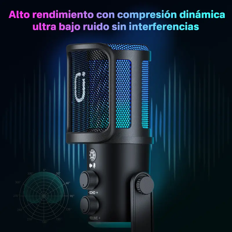 【Envío gratuito】Micrófono dinámico para juegos, micrófono USB con reducción de ruido, luz RGB, silenciamiento con un solo toque, soporte a prueba de golpes, filtro antipop, para PC/Mac/PS5/PS4, streaming/grabación/podcast, auriculares incluidos.