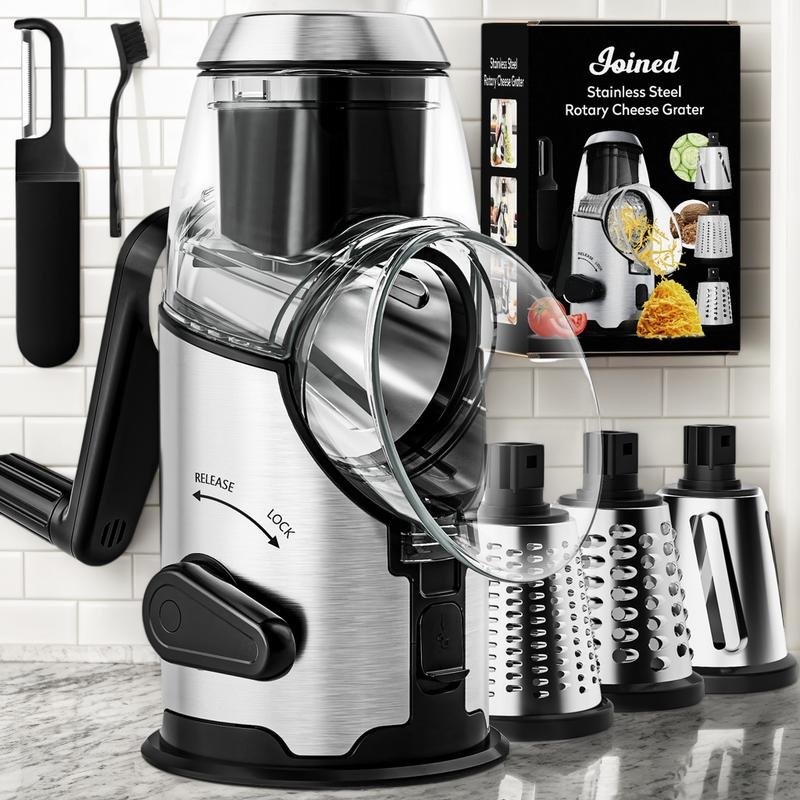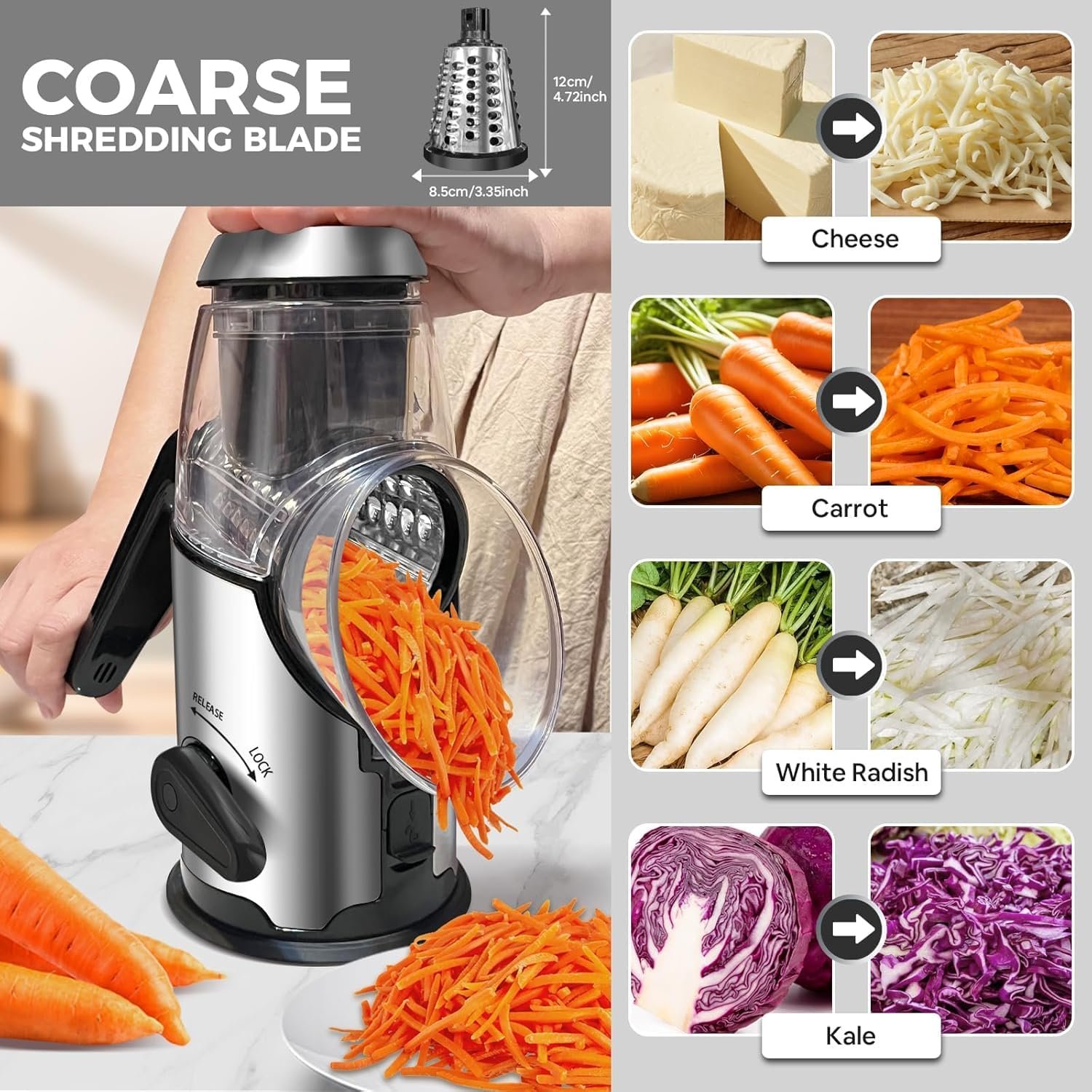 【Regalo para el día de Navidad】Rallador giratorio para queso de cocina, cortador a mandolina con 3 cuchillas de acero inoxidable DrumBlades Vegetable, picadora de carne para nueces, queso, regalo de Navidad para la familia 2026 newyear