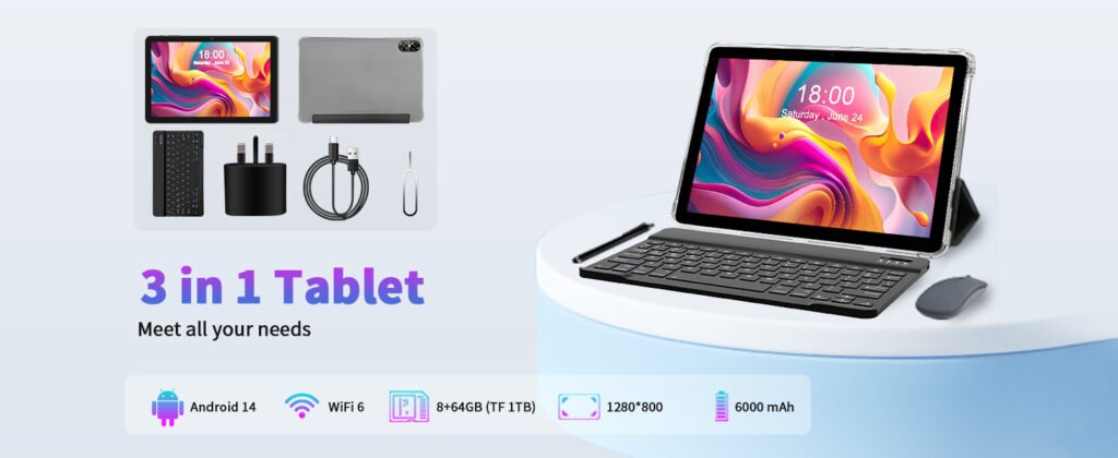 10.1″ Android Tablet Set – 8-Core, 8GB RAM, 64GB Storage, Includes Bluetooth Keyboard & Mouse, Portable Smart Device