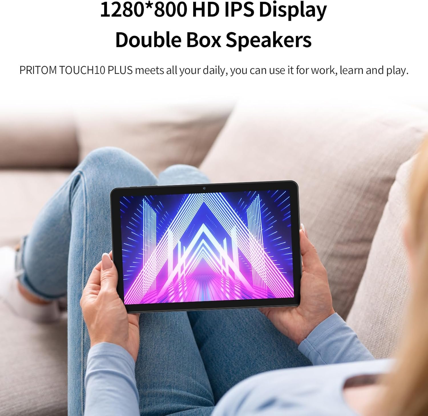 • Brilliant IPS Screen] ✨PRITOM 10 inch tablet PC features a stunning 1280*800 HD IPS screen. This Android E10 (M10) tablet has a sharper hierarchy of images and richer colors, providing a shocking performance of the visual experience. With Eye Health Mode, an additional feature filters out blue light to reduce visual fatigue and optimizes backlight for a more comfortable reading experience