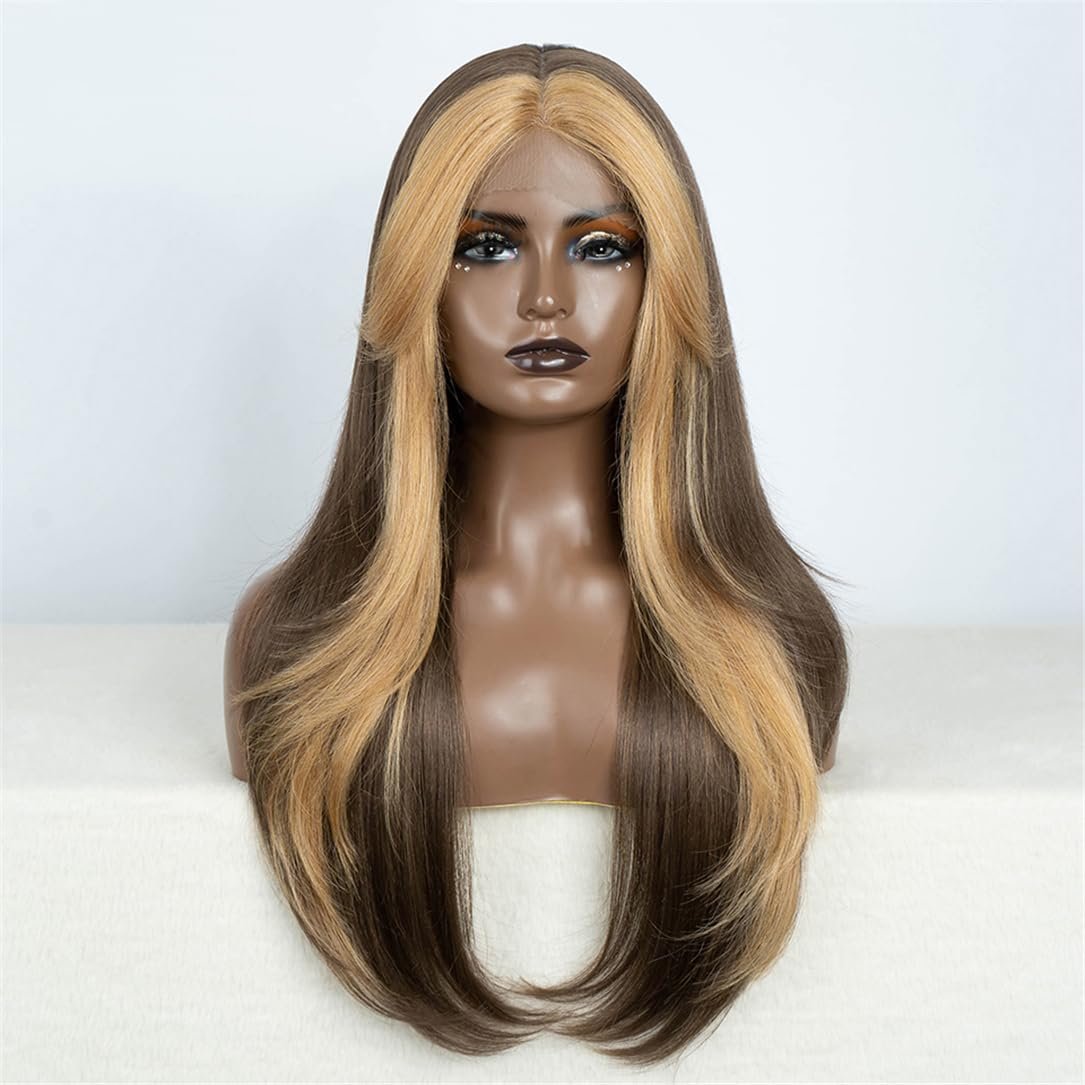 26 Inch Layered Long Straight Wigs for Women, 1 Piece Gorgeous Fluffy Wigs without Bangs for Cosplay, Anime or Costume Party, Striking Natural Fluffy Hair Wigs without Bangs