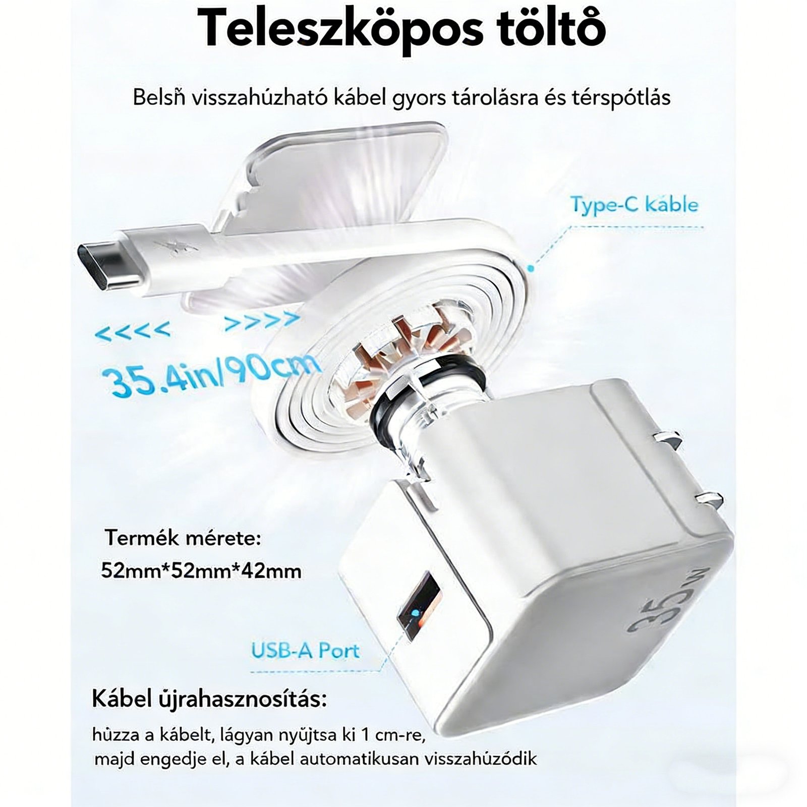 • [Retractable for storage] Retractable wall charger block built-in a USB A Port and a Type c retractable cable. The retractable cable has a maximum stretchable length of 35inch/ 89cm and can be retracted by gently stretching the cable by another 1 cm. Keep your kitchen, office, travel and bedroom more clean and tidy, no longer tangled cables, easy to control and use.