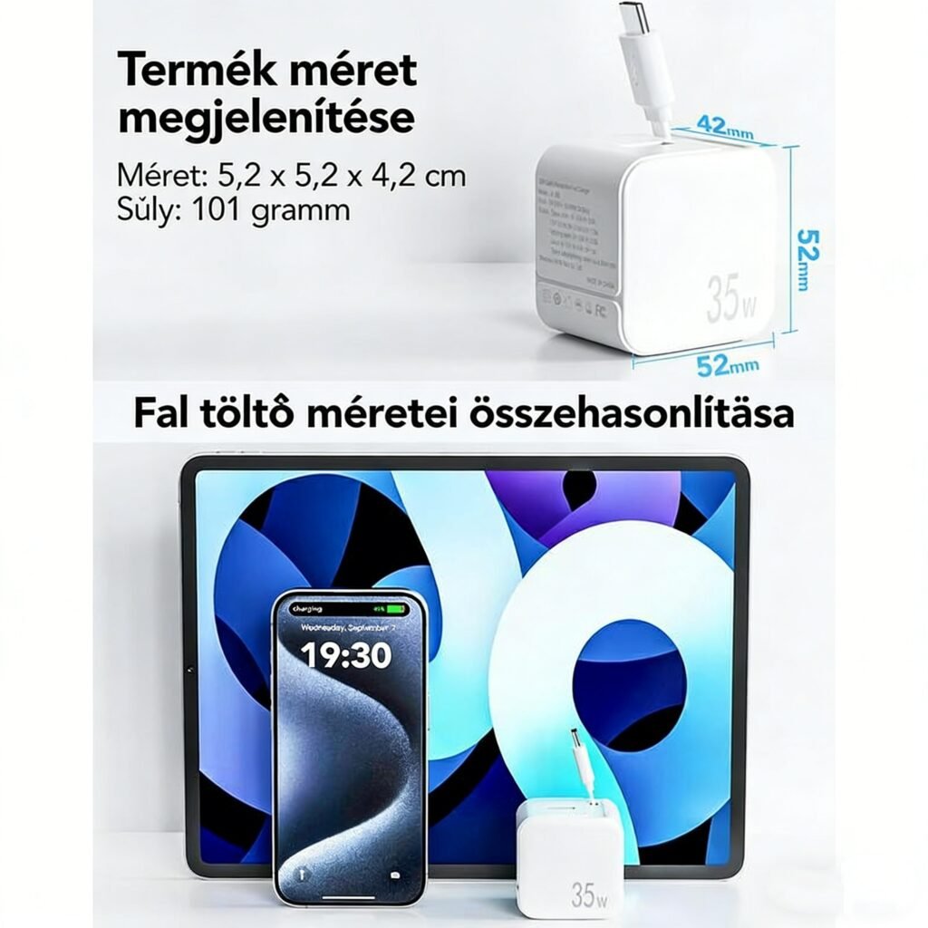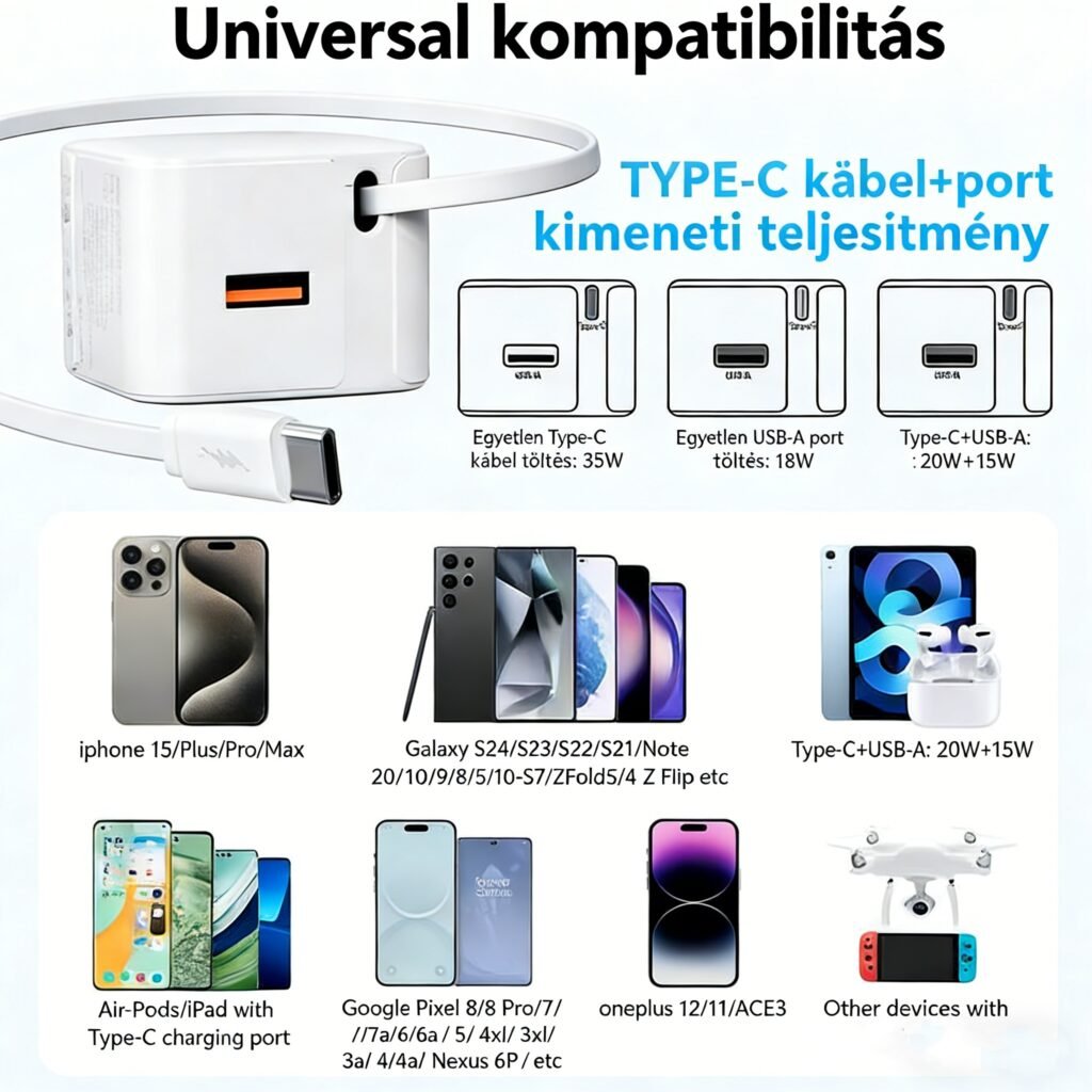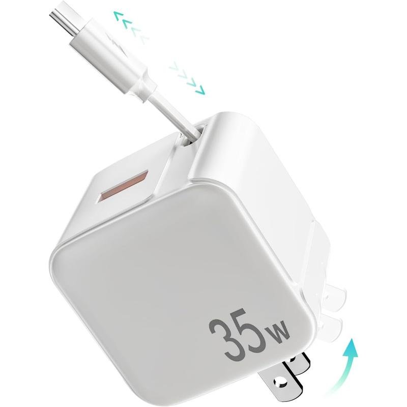 • [Dual Fast Charging Port] This PD 35W portable wall charger can fast charge your two devices simultaneously. Only charge one device,max support PD 35W or USB A is 18W. When charge two devices simultaneously, max supports PD 20W + USB A 15W. USB-A Port: For iPhone 16/15/14/13/12 Pro Max,Galaxy S24/ S23/ S22/ S21/ S20/ S20+/ S20 Ultra,Galaxy Note 10/10+/20 Ultra, Switch, Pixel ect. Retractable USB C Cable: For iPhone 16/15 Pro Max,Galaxy,Pixel/Switch/Camera ect