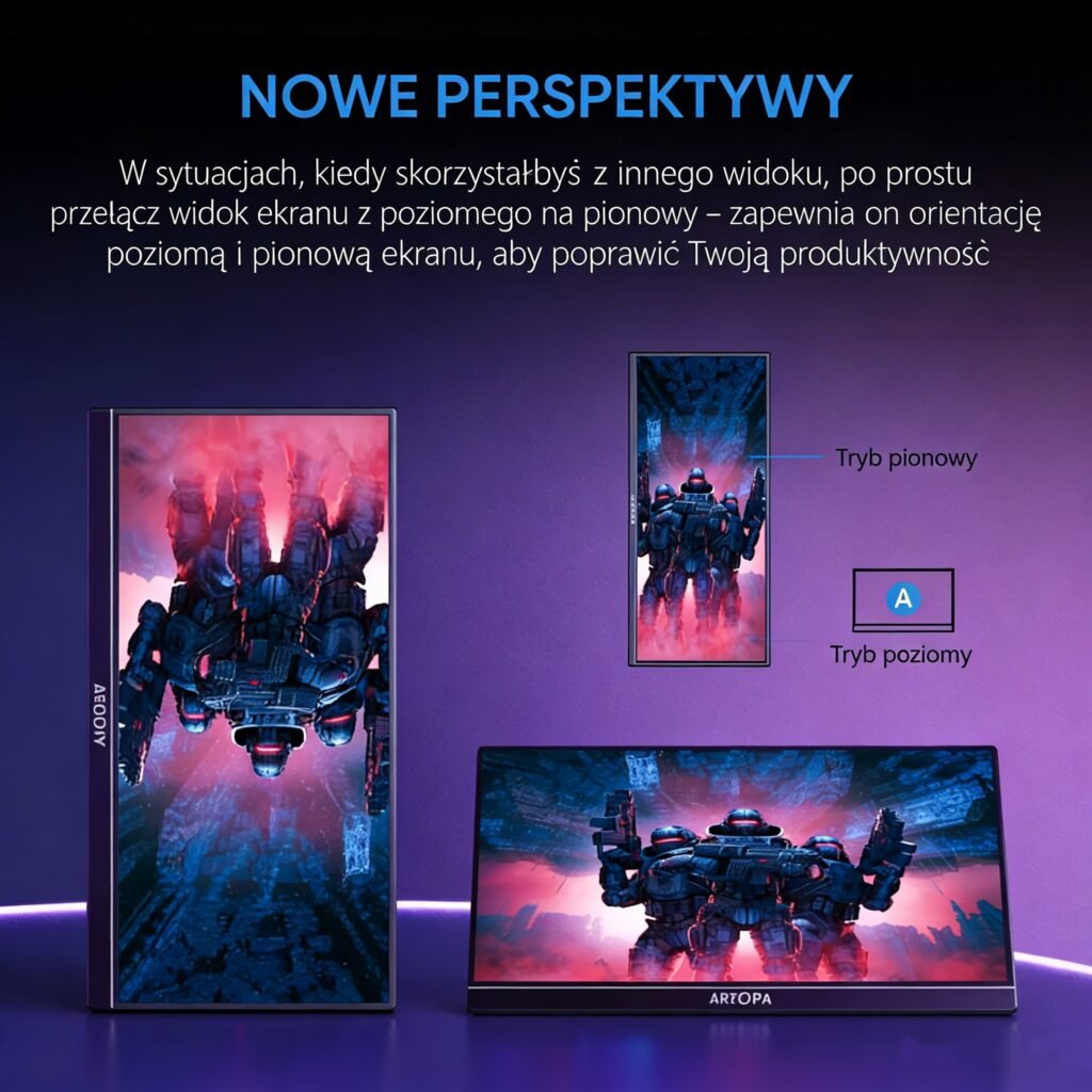 • Przenieś rozgrywkę, tworzenie treści lub wielozadaniowość na wyższy poziom dzięki przenośnemu monitorowi ARZOPA Z1FC o przekątnej 16,1 cala. Dzięki płynnej częstotliwości odświeżania 144 Hz, pełnemu pokryciu kolorów sRGB i wszechstronnej konstrukcji ze zintegrowaną podstawką, ten monitor został stworzony dla graczy, twórców i profesjonalistów, którzy potrzebują wysokiej wydajności w podróży. Niezależnie od tego, czy korzystasz z konsoli do gier, smartfona, czy laptopa, Z1FC zapewnia wciągające wrażenia w rozdzielczości Full HD w dowolnym miejscu.