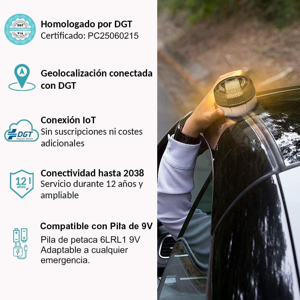 • ✅Aprobada y Homologada por la DGT: <strong>Certificado (IDIADA PC25060215)</strong> ​✅La Baliza V16 con geolocalización será el único dispositivo legal de preseñalización de peligro. Reemplaza a los triángulos de emergencia cumpliendo con las regulaciones de seguridad vial exigidas por la DGT actuales y las que serán obligatorias a partir del 1 de enero 2026.