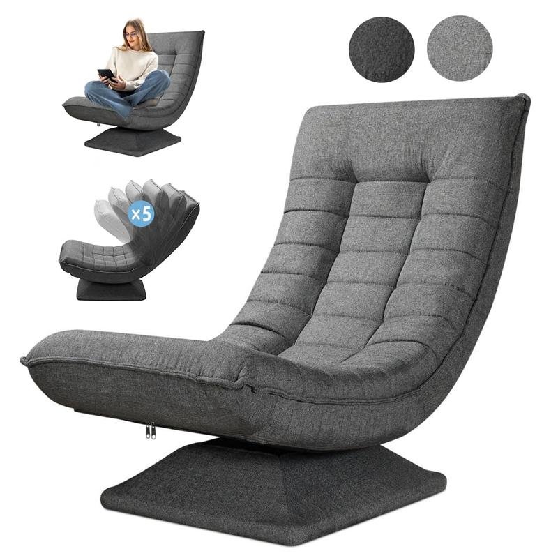 Bodenstuhl, 360° drehbar, verstellbare Rückenlehne, faltbar, Gaming-Freizeitsessel, Sofa, keine Montage erforderlich, bequem, Grau, Schwarz