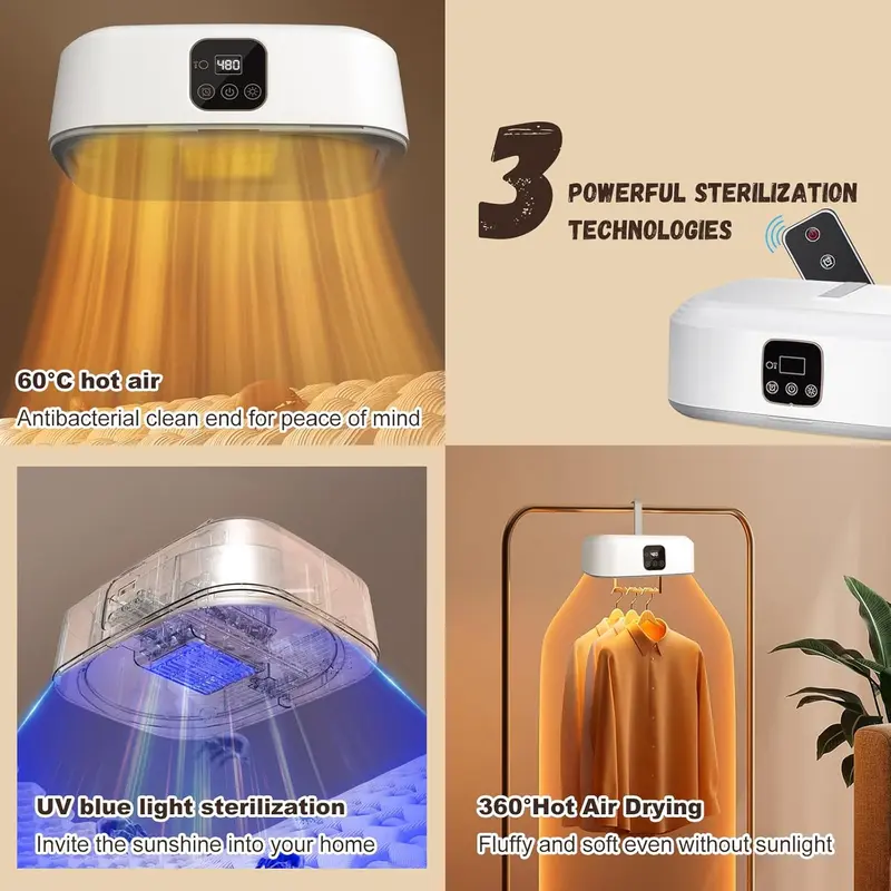 Cecaro Group – Secadora eléctrica portátil plegable – Esterilización UV, Temporizador de 8 h, Aire caliente 360°