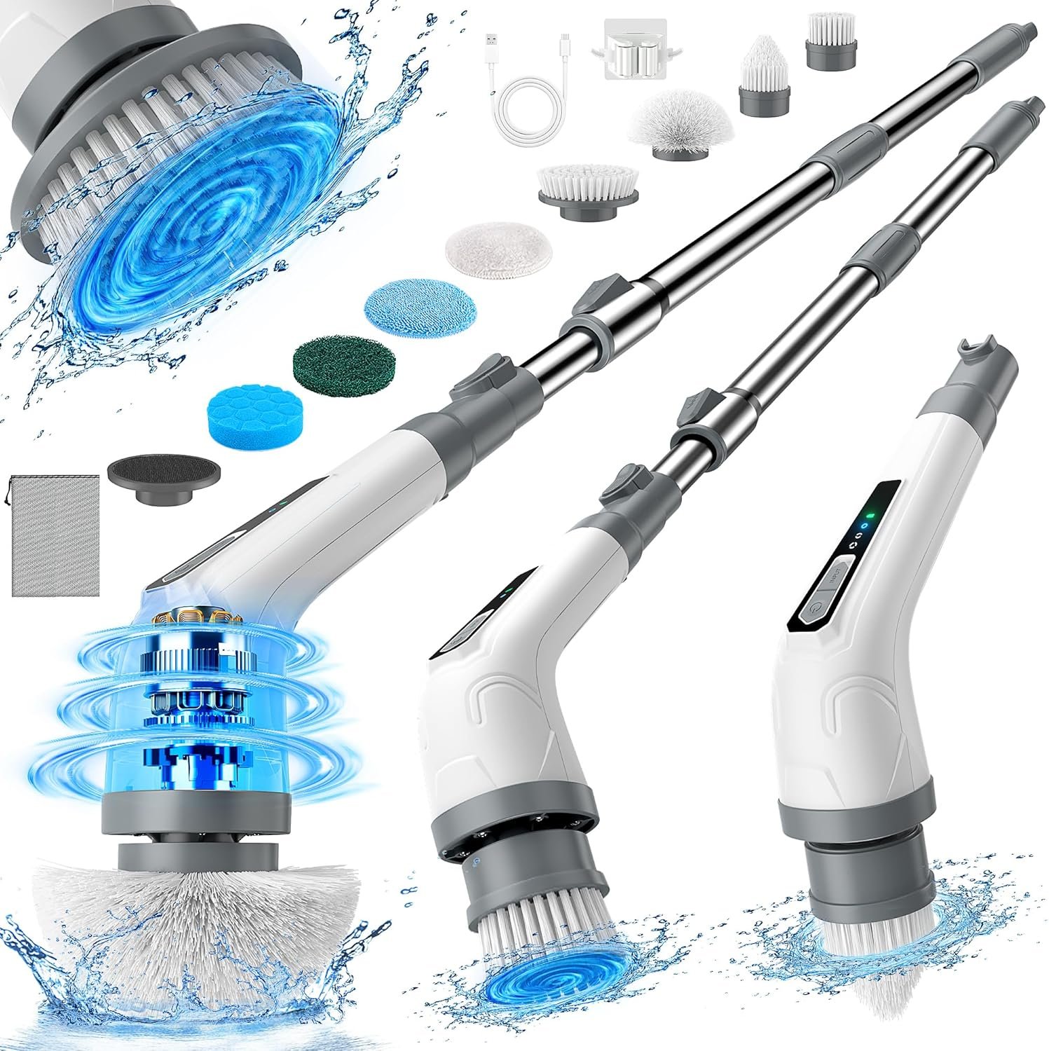 Cepillo de Limpieza Eléctrico con 6 Cabezales Intercambiables para Baño, Cocina y Hogar