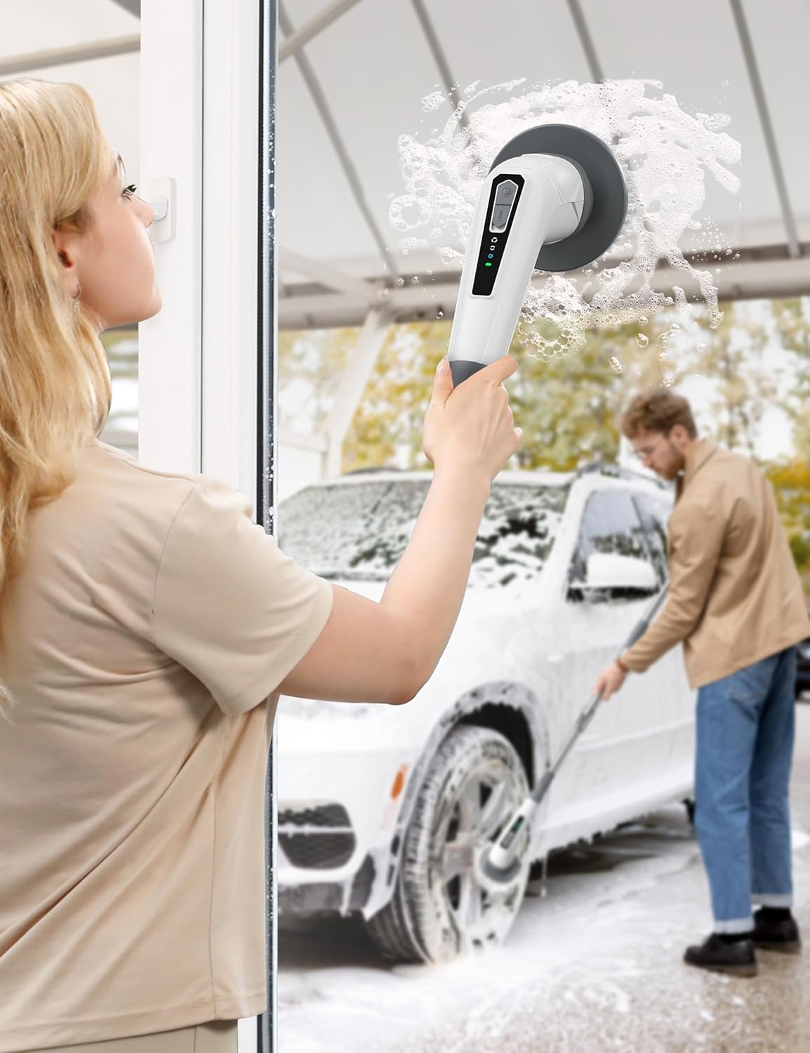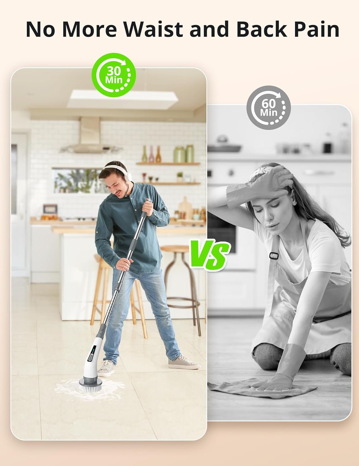 • Powerful and Adjustable Design: This shower scrubber combines power and convenience. It features a cordless design that gets rid of the cord. Equipped with a powerful motor, electric scrubber has superior cleaning ability to effectively remove stubborn stains and dirt. It has three adjustable speed settings (320RPM, 370RPM, 420RPM) so you can customize the cleaning intensity as needed. The low speed setting is perfect for gently cleaning delicate surfaces, while the high speed setting tackles the most stubborn dirt. And with a 150-minute battery life, you can keep cleaning without interruption.