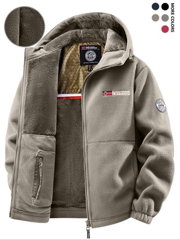 Chaqueta con capucha para hombre, forrada de felpa, cálida y cortavientos con bolsillos, prenda de abrigo informal para otoño e invierno, diseño de manga larga con cremallera.