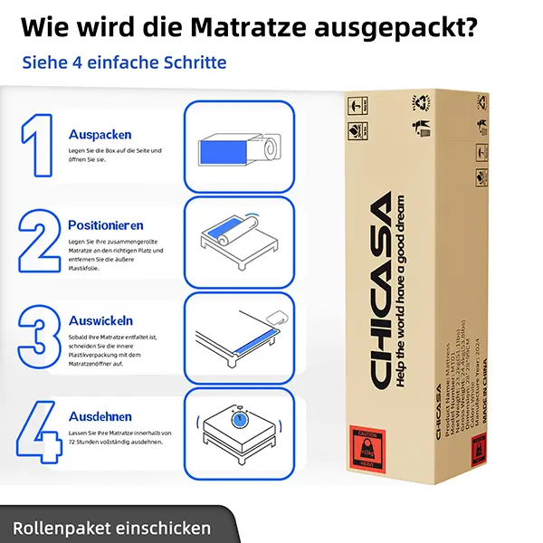 Chicasa 2. Generation PRO Tiefschlaf-Matratze — Technologie trifft Komfort für erholsame Nachte Die weiterentwickelte Version der zweiten Generation kombi Schaum für optimale Druckverteilung und sanfte,korpernaheUnterst Die verbesserte, mehrschichtige Dampfungsstruktur reduziert Bewegungen beim Umdrehen und sorgt für eine ru
