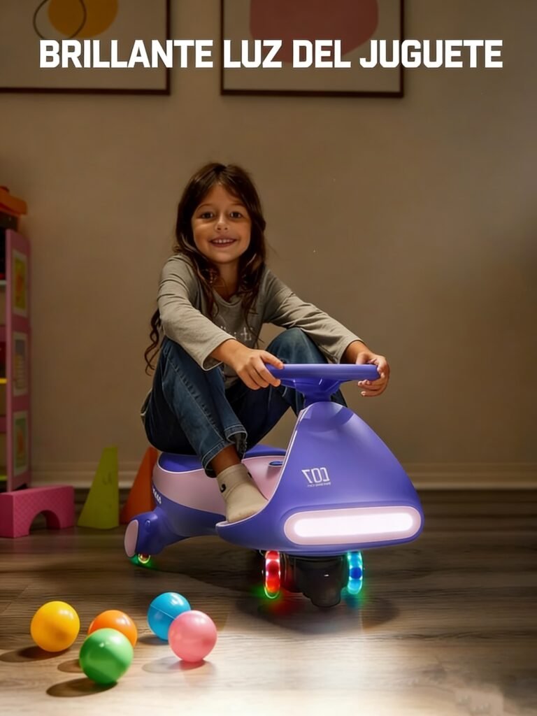 Ruedas luminosas y Bluetooth: Las coloridas ruedas magnéticas con luces intermitentes y las luces LED delanteras hacen que este coche eléctrico para niños destaque. Con conectividad Bluetooth, controla el volumen y reproduce las canciones favoritas de tu hijo para un paseo aún más divertido. Las ruedas de PU garantizan un deslizamiento suave sin rayar el suelo, ¡ideal para jugar tanto en interiores como en exteriores!