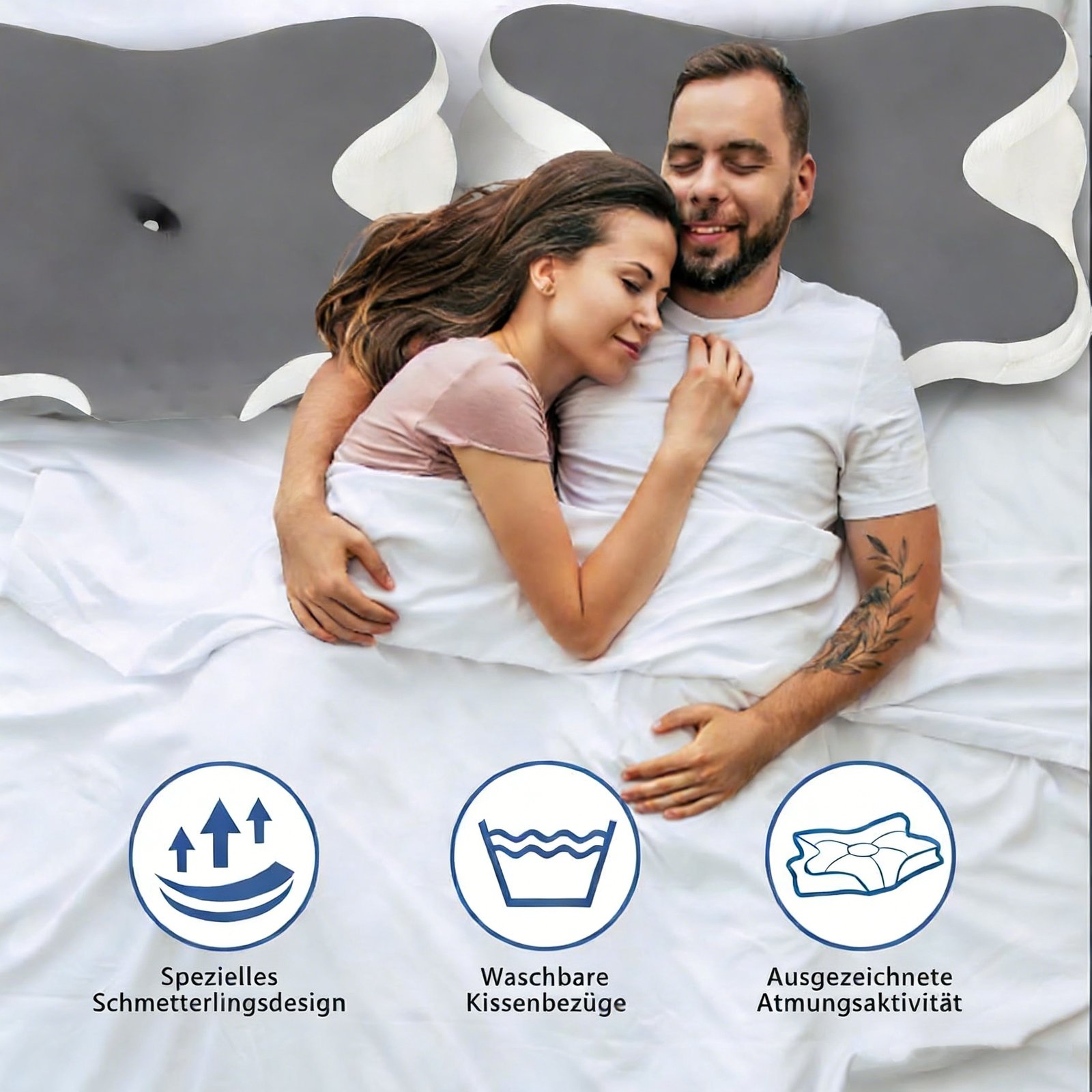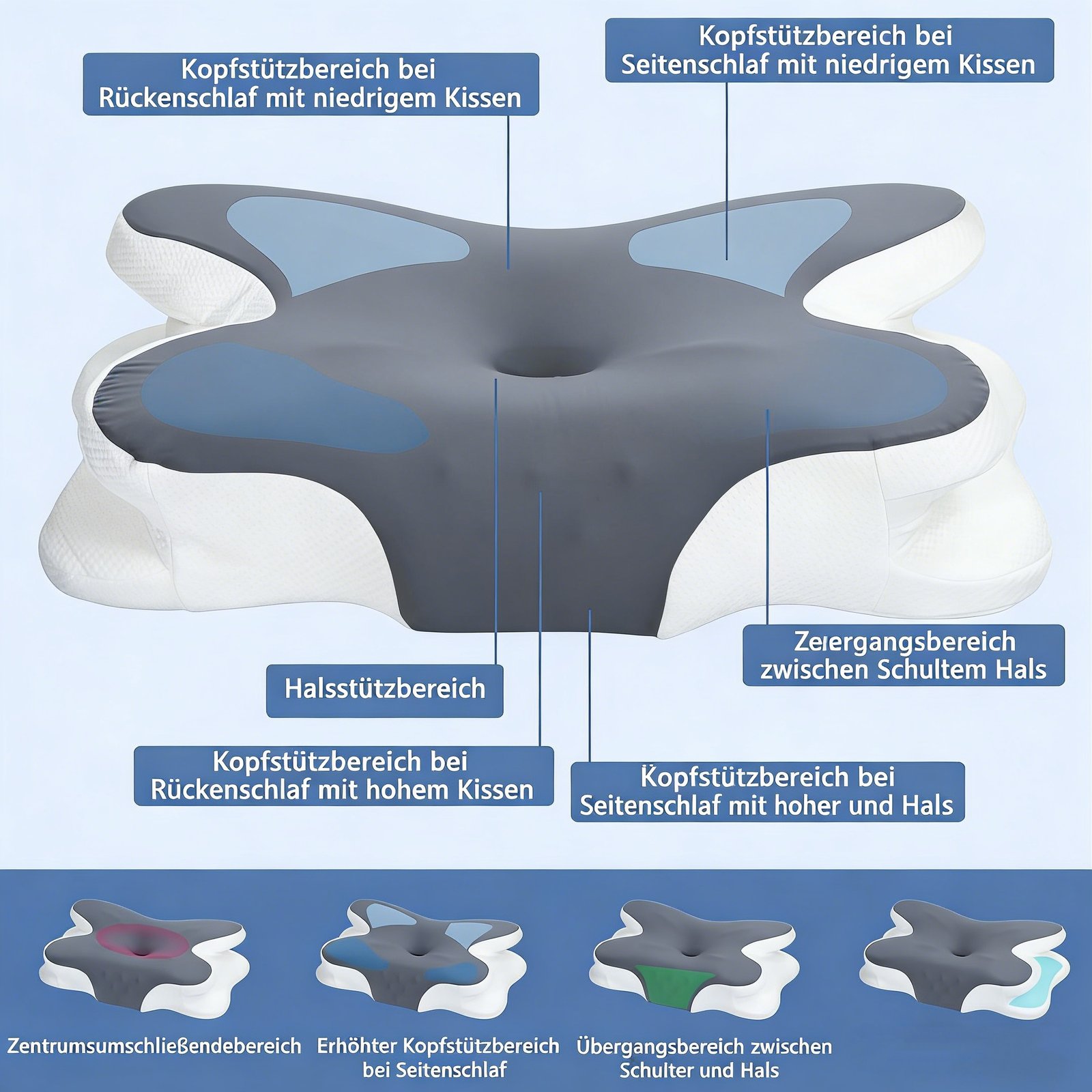 Doppelseitiges Nackenkissen Unscented Memory Foam Kissen mit Kühlabdeckung Zoniertes Design für Tiefschlafer Konturiertes Kissen mit extra großer Armlehne für Seitenschlaf Magen Schlafen und Rückenschlafer