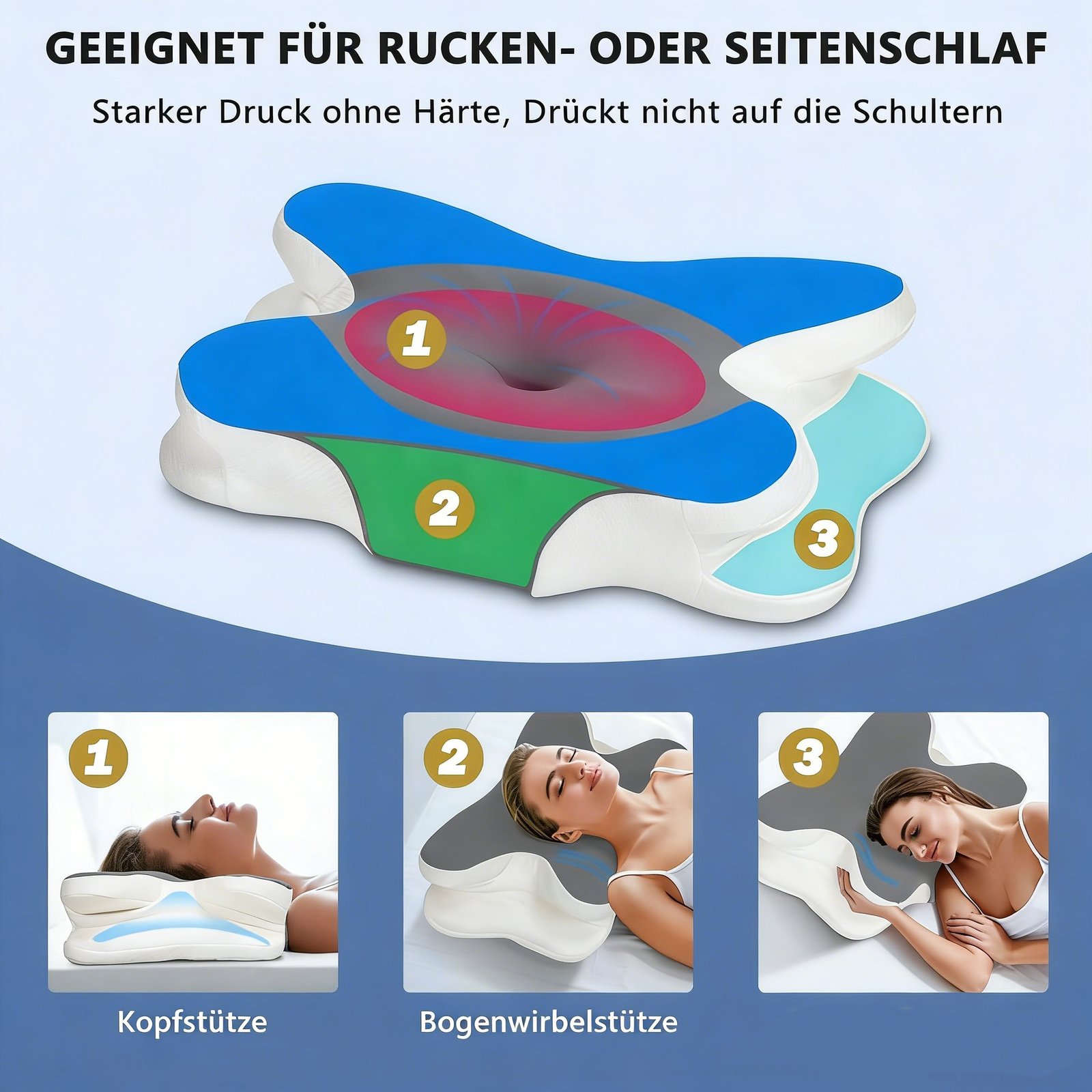 • 5-Zone Ergonomic Support | Engineered with a 5-zone ergonomic design that supports the neck and spine to promote proper alignment and relieve pressure.