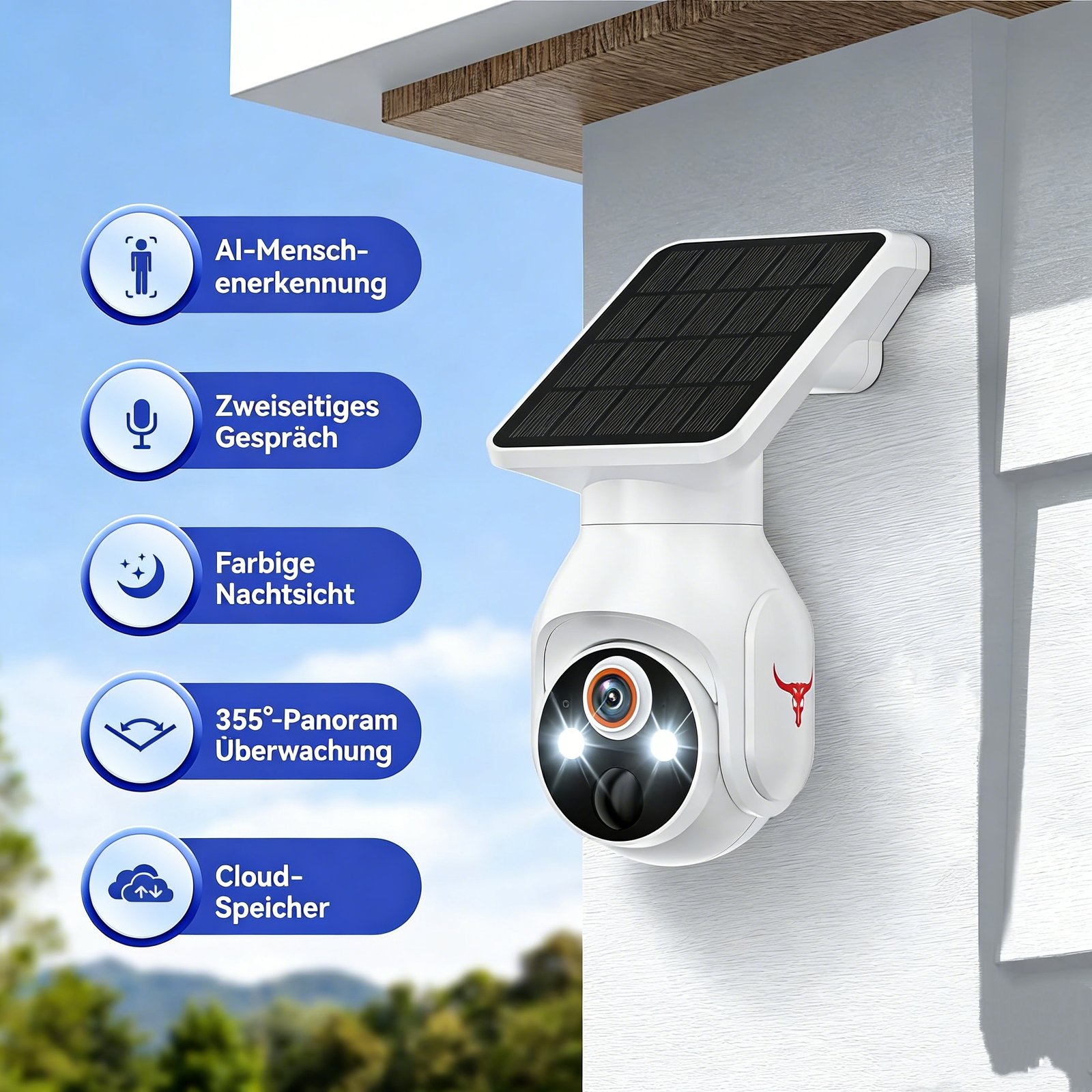 Drahtlose Solar-Sicherheitskamera für den Außenbereich, 1080P batteriebetriebene WiFi-Überwachung, Menschenerkennung, Farbnachtsicht, 2,4G WiFi, Live-Ansicht und Cloud-Speicher