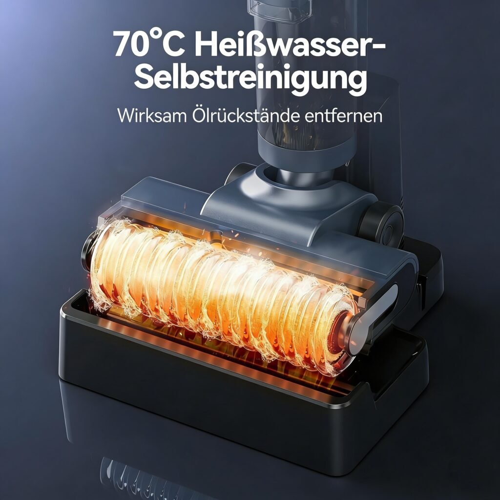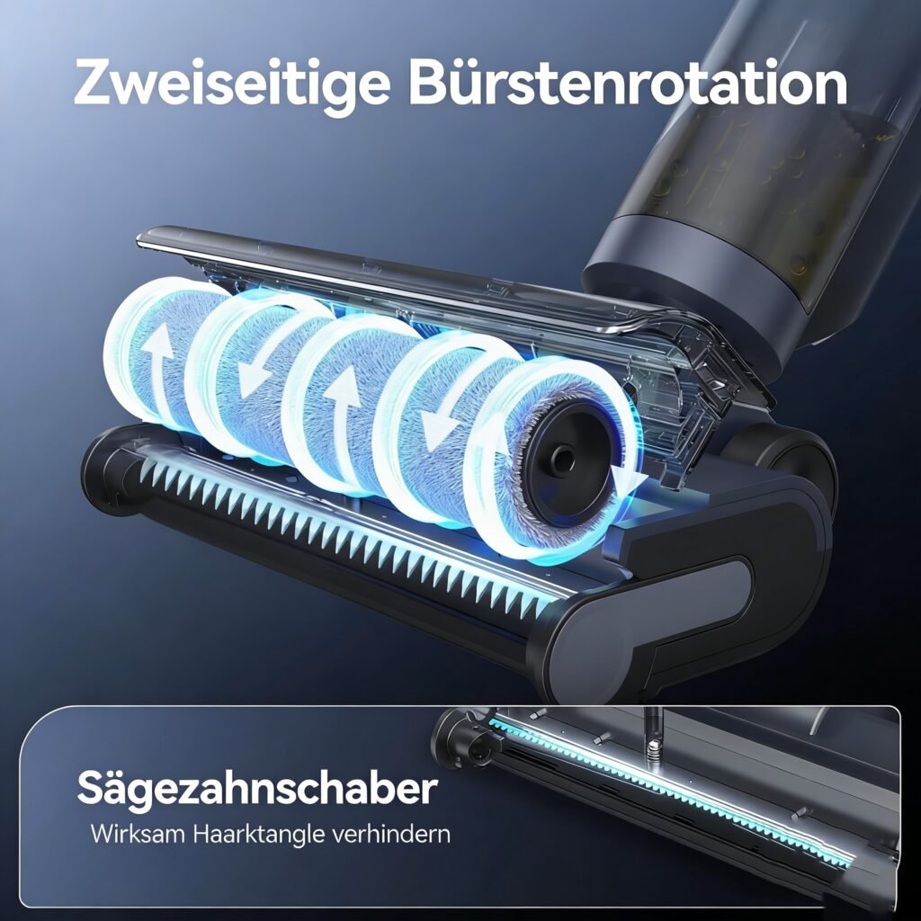 ED12 Pro Akku-Staubsauger, kabelloser Staubsauger, Dreikantenreinigung, hotwasser-Selbstreinigung Heißlufttrocknung, 850 ml Wassertank, Anti-Verwirrungs-Haar für Hartböden, Tierhaare