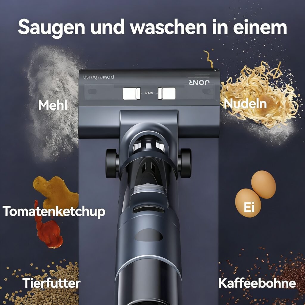 • Super suction power for comprehensive cleaning – The JONR ED12 Pro wet vacuum cleaner’s powerful 9,000 Pa suction power and 66,000 rpm high-speed motor make it easy to clean large areas of the house up to 230 square metres by sucking up stubborn dirt in one go. The wireless vacuum cleaner benefits from a large 850ml cleaning and 450ml waste water tank, which eliminates the need for frequent dumping during the cleaning process, making large area cleaning even more hassle-free