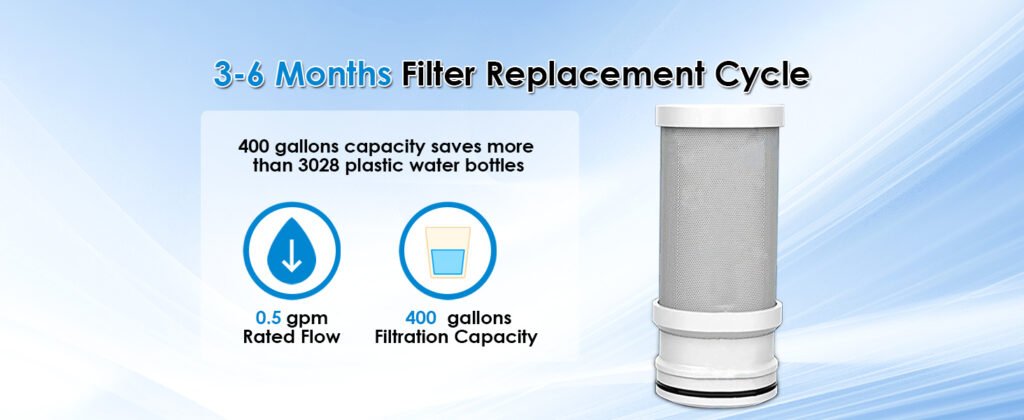 • 𝐋𝐨𝐧𝐠-𝐥𝐚𝐬𝐭𝐢𝐧𝐠 𝐟𝐢𝐥𝐭𝐞𝐫 𝐥𝐢𝐟𝐞: One filter can replace 3,028 plastic bottles (16.9oz each). You only need to change the filter every 4-5 months. There are 2 water modes between raw water and purified water to choose from, prolonging the filter life