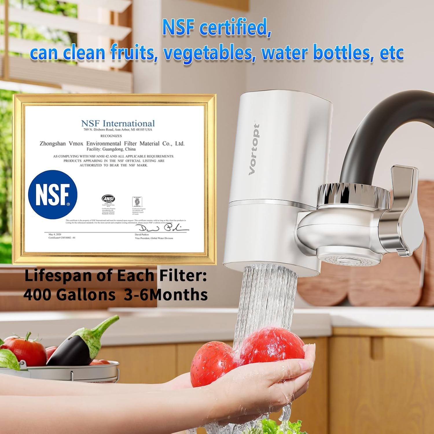 • 𝐍𝐒𝐅 𝐜𝐞𝐫𝐭𝐢𝐟𝐢𝐜𝐚𝐭𝐢𝐨𝐧𝐬: Enjoy fresh purified water with the Vortopt faucet mount water filter. With purification to 0.2μm, the filter is NSF certified to reduce 99% of contaminants such as rust, sediments, chlorine, lead, odor, and improve taste, making your water clean and healthy