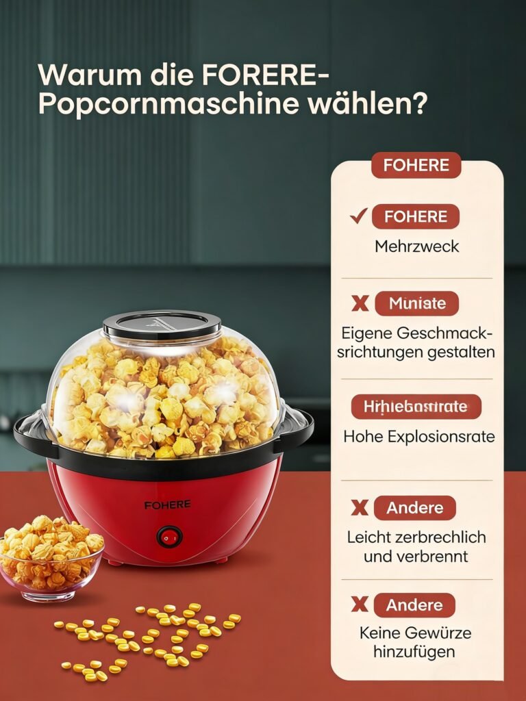 Be the first to review “FOHERE-Home Popcornmaschine, 5,5 L Popcornmaschine mit Zucker, Öl, Butter, Antihaftbeschichtung und abnehmbarer Heizfläche, leise und schnell, großer Deckel als Servierschale”