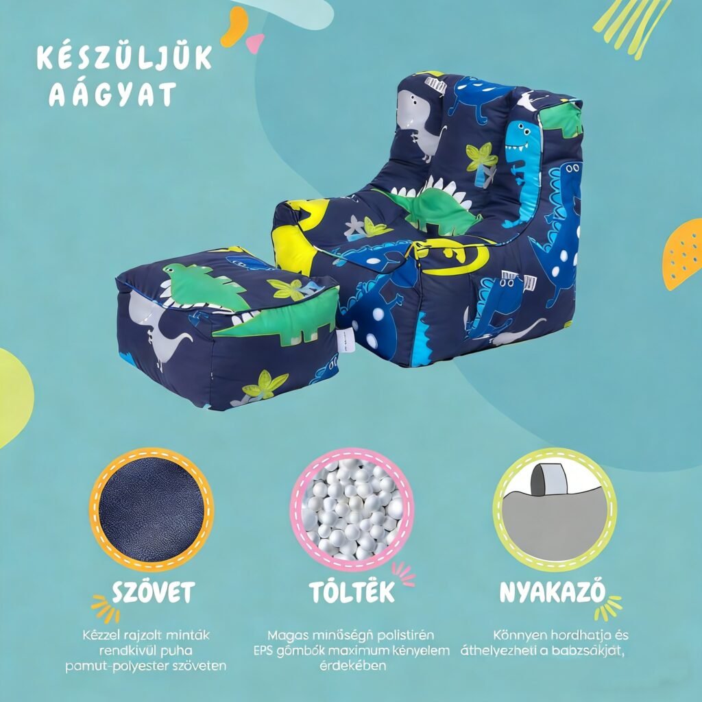 Be the first to review “Gyermek babzsákfotel – Kisgyermek babzsákfotel lábpótlóval, Nyomott belső használatú puff készlet”