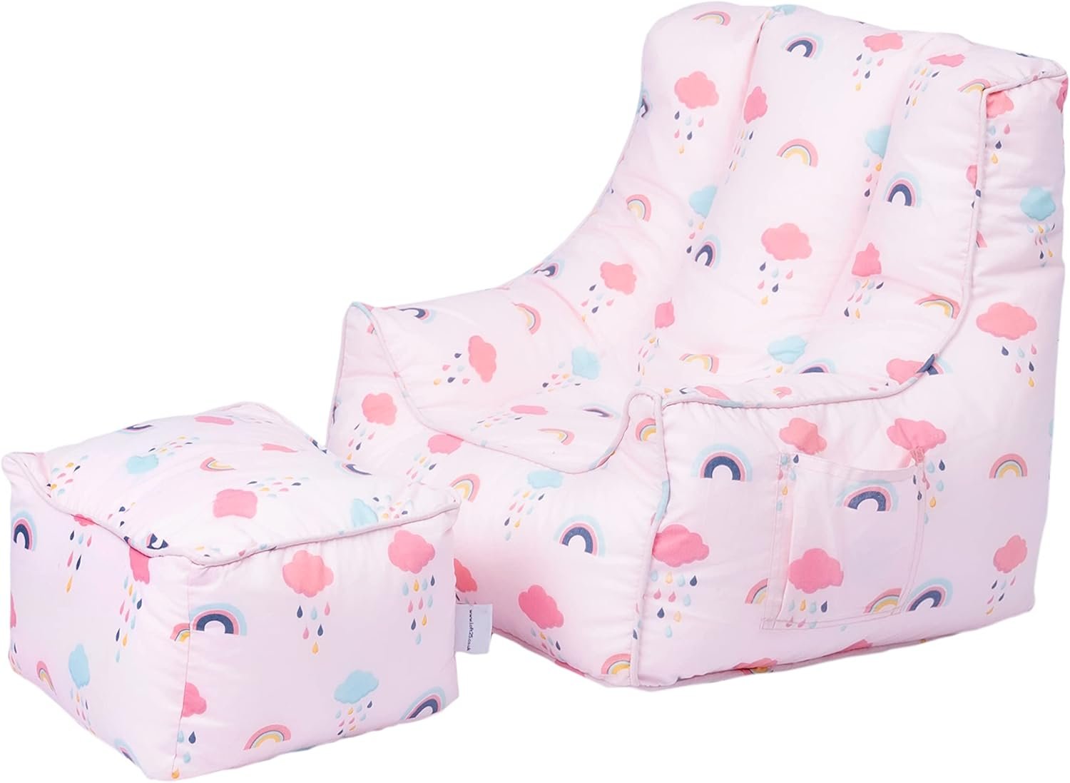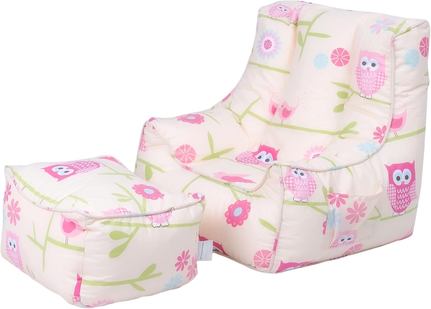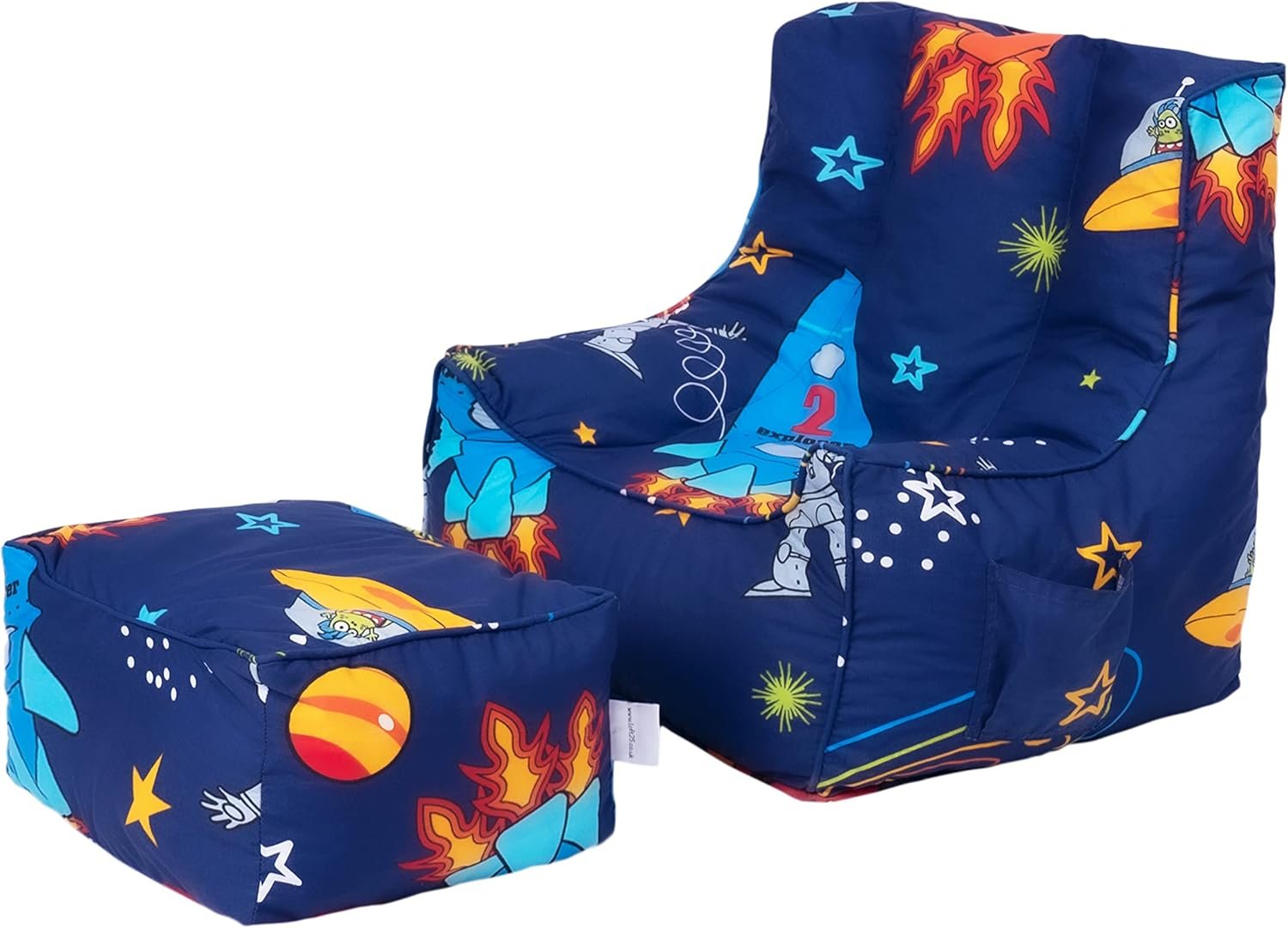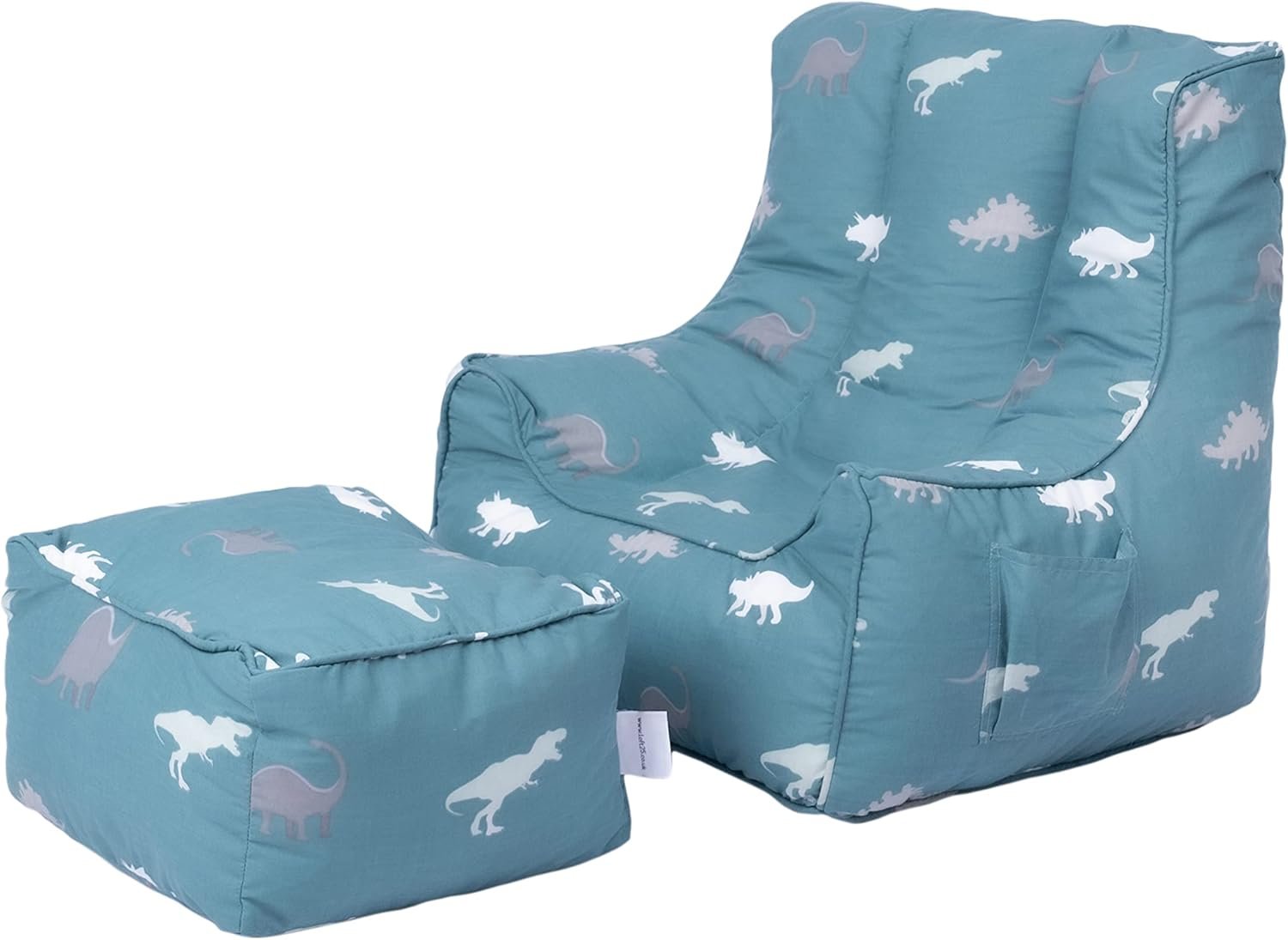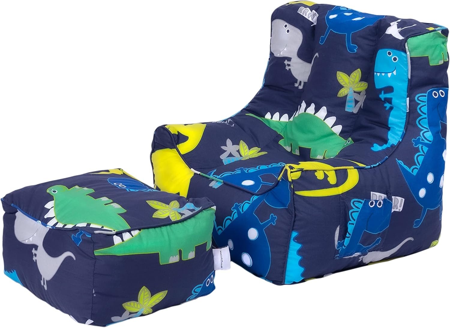Gyermek babzsákfotel – Kisgyermek babzsákfotel lábpótlóval, Nyomott belső használatú puff készlet