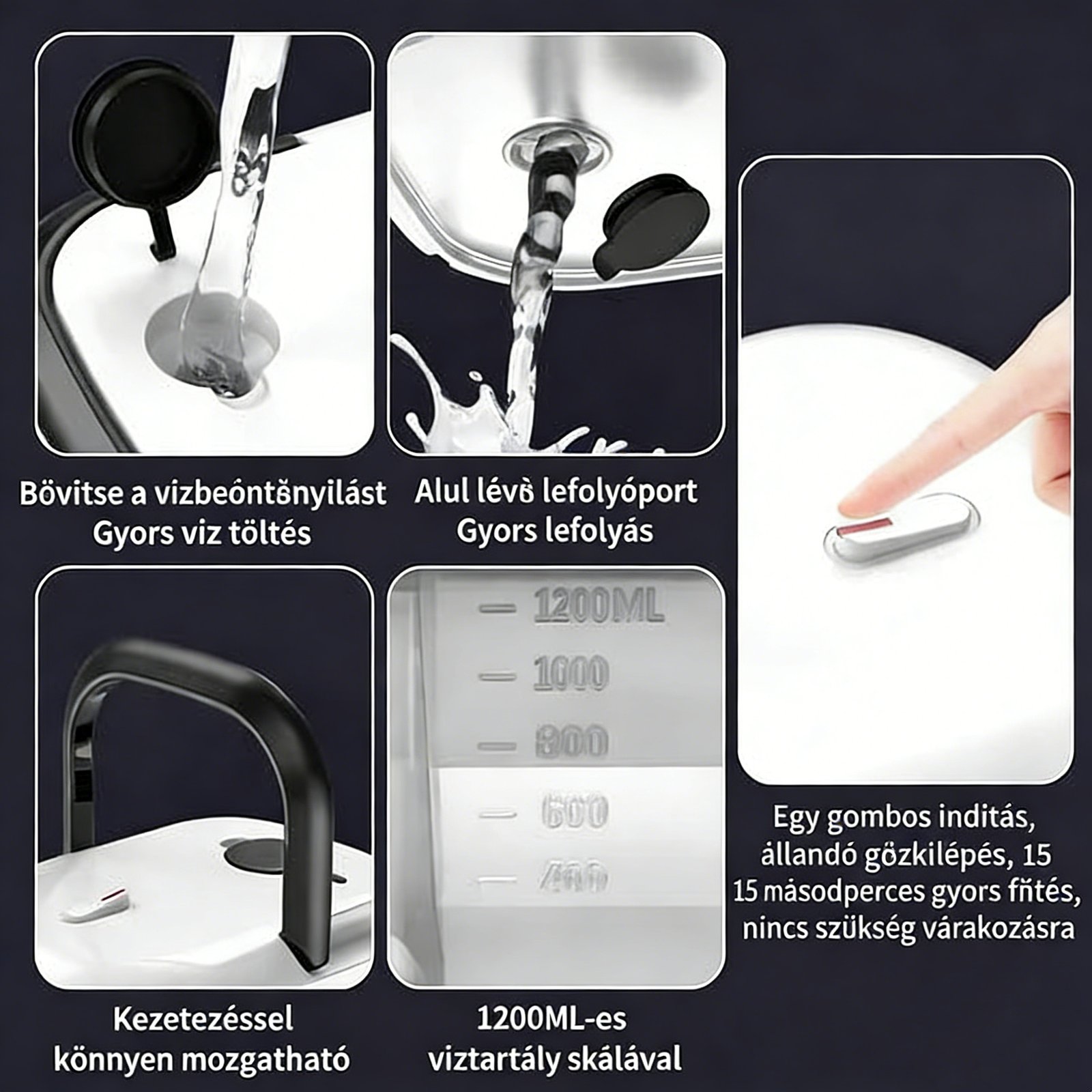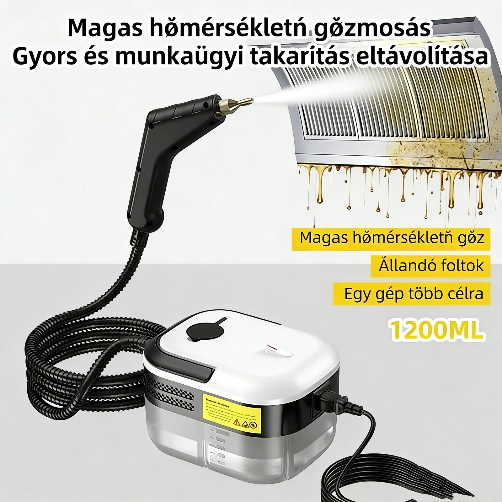 • 1200W STRONG STEAM CLEANER, 10S FAST HEATING: With 1200W strong power, the steam cleaner handheld can generate 229°F/105°C high temperature and 3BAR pressure steam within 10s, effectively remove stubborn greasy dirt and stains.