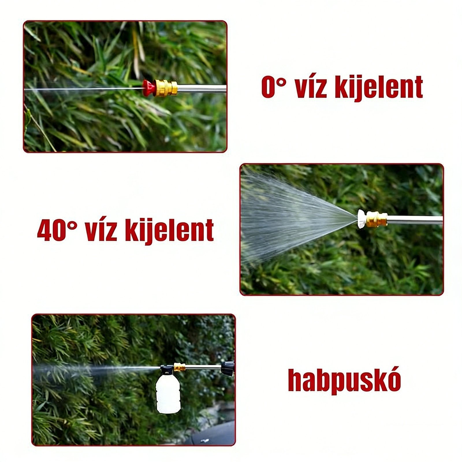 • Accessories included: Includes 2 rechargeable batteries, a charging cable, a 10 m long hose with its adapter for the gun, a water filter, two 0° and 40° nozzles and a spray bottle.