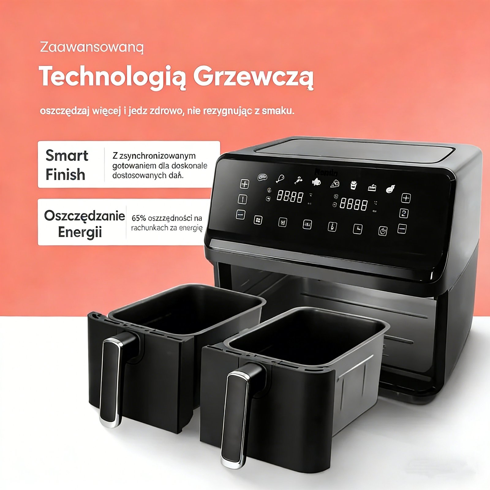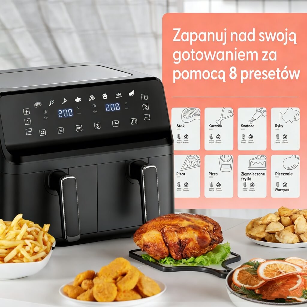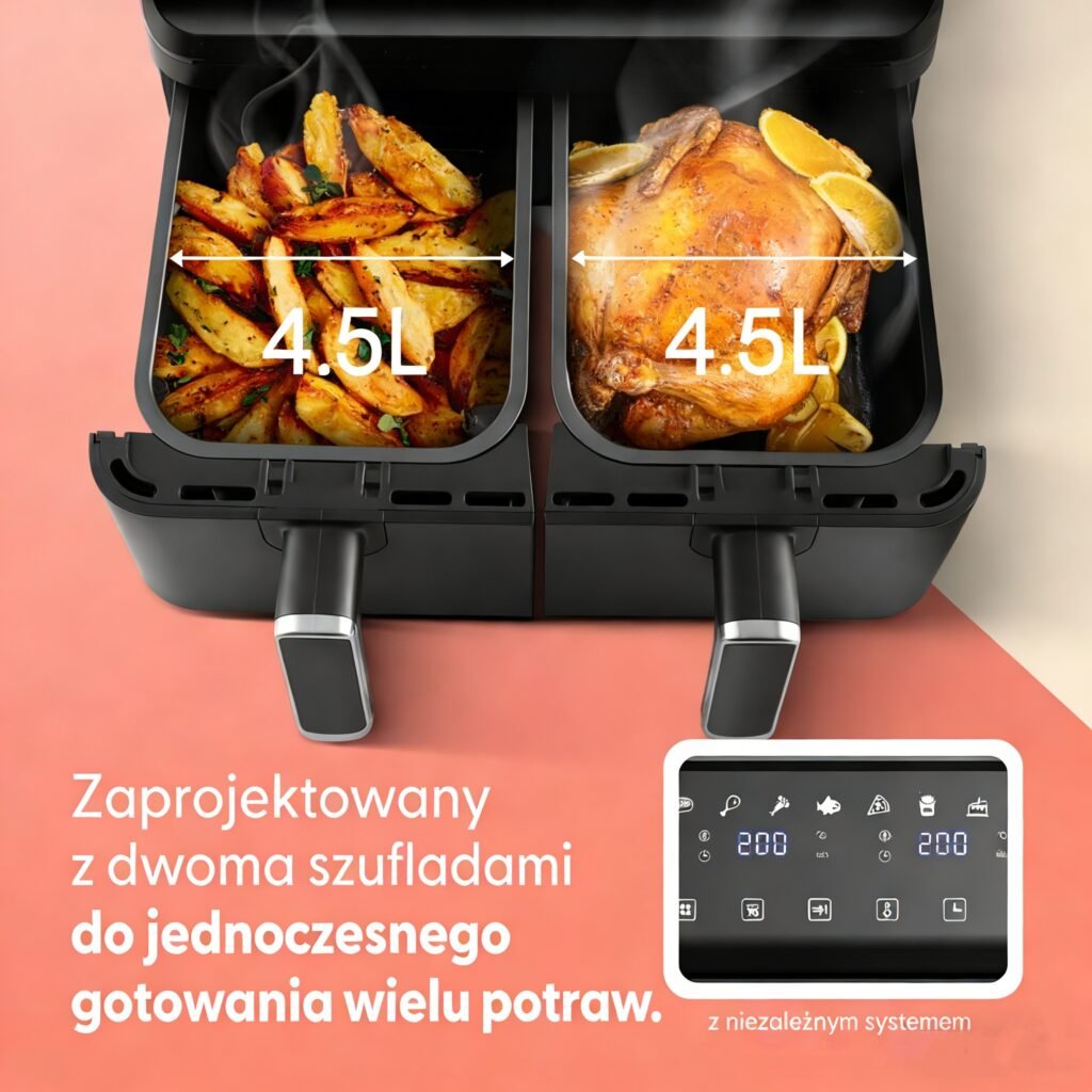Keplin Dual Zone Air Fryer – Energy-Saving Cooker with 6 Cooking Functions – Extra-Large Capacity for Healthy Meals – Roast, Bake, Dehydrate, Crisp – Family Size ( 9 / 9.5 L )
