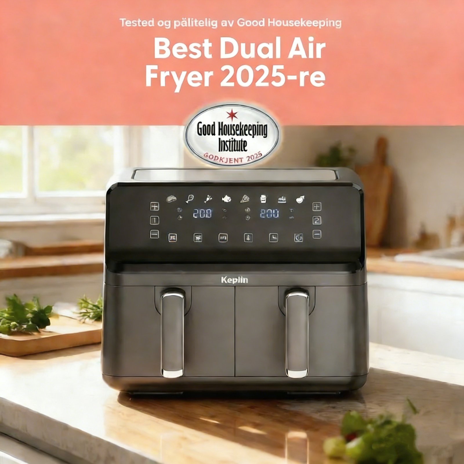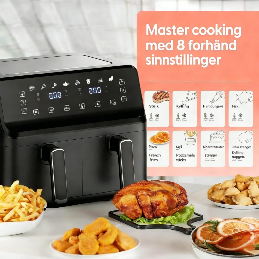 Keplin Dual Zone Air Fryer – Energy-Saving Cooker with 6 Cooking Functions – Extra-Large Capacity for Healthy Meals – Roast, Bake, Dehydrate, Crisp – Family Size ( 9 / 9.5 L )