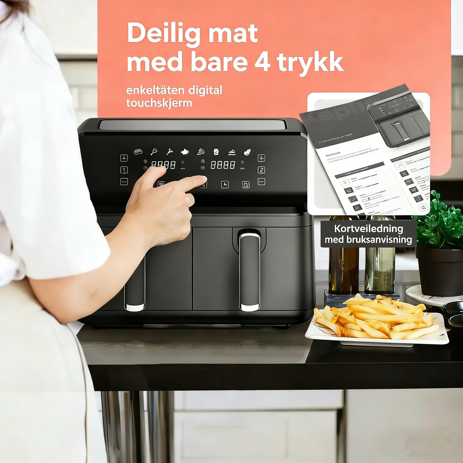 • Keplin 9L Airfryer :·Energy-Efficient Cooking: Featuring exclusive Even Heating Technology, our air fryer cooks 50% faster than conventional ovens, saving up to 55% on your energy bills.·Precision for Gourmet Delights: With 8 presets including Air Fry, Bake, and Roast, plus manual time and temperature settings, you can create top-notch, delicious meals effortlessly with this airfryer. ·Spacious 9L XL : The perfect rectangular baskets of digital air fryer fits a whole chicken and offers 15% more cooking space than dual basket air fryers, ensuring an evenly cooked finish.·Healthier Dining, Crispy Delights: Enjoy the same delicious fried food with 85% less oil compared to traditional deep-frying, delivering crispy outside and soft inside results.·Easy Cleanup: Spend less time scrubbing with a quick rinse or a gentle sponge swipe. Follow the user manual for cleaning instructions to avoid damage.