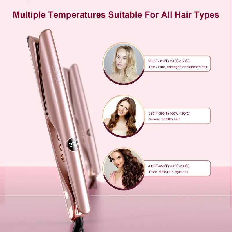 • 【2-in-1 Versatility: Straighten, Curl & Wave】 The ultimate 2-in-1 hair straightener and curler! Perfect for creating sleek straight hair, voluminous curls, and defined waves. This pro multi-styler is your all-in-one tool for any hairstyle. The adjustable temperature control (120°C-230°C) allows you to customize the heat for all hair types, from fine to thick.