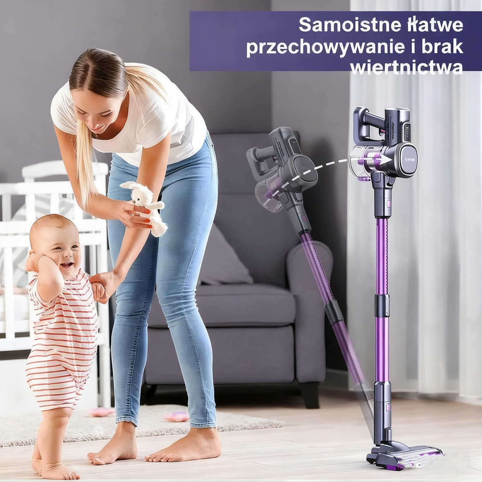 Lubluelu Cordless Vacuum Cleaner – 25KPa Powerful Suction, Self-Standing, for Pet Hair, Carpet & Hard Floors, Purple