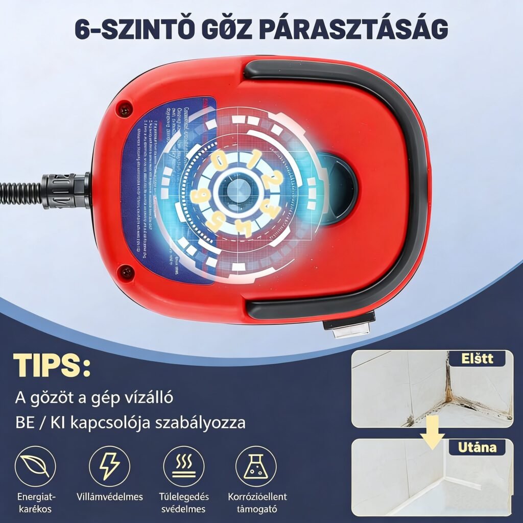 Moongiantgo nagynyomású gőztisztító – 2500 W-os hordozható gőztisztító fürdőszobai és otthoni tisztításhoz