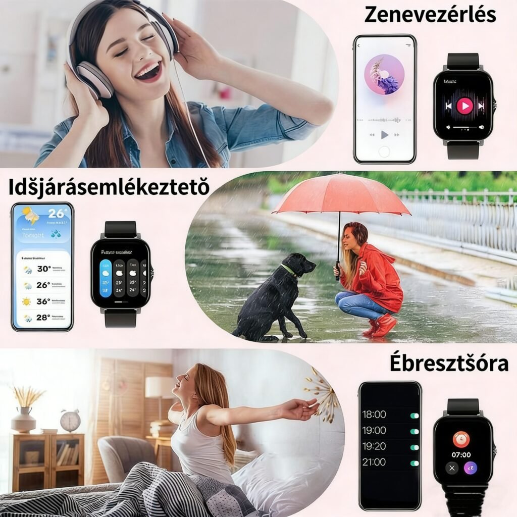 • 【Message Notification & Powerful】Stay connected to SMS and app messages from Facebook, WhatsApp, Instagram, Tiktok, Skype and more. Our fitness watch also contains many useful tools, such as Bluetooth answer/make call, drinking reminders, menstrual tracking, weather forecast, music control, camera control, setting alarms, stopwatch, timer, breather guide, raise to wake, find phone and so on.