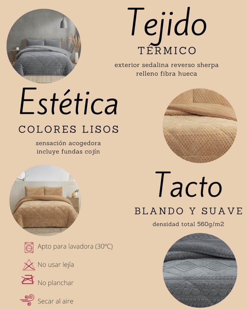 Novotextil Edredón Invierno Sherpa Cama 90 hasta 150 Extra Grueso 560gr/m2 Efecto Borreguito – Edredón Suave, Cálido y Transpirable con 1 o 2 Fundas Almohada (50×70)