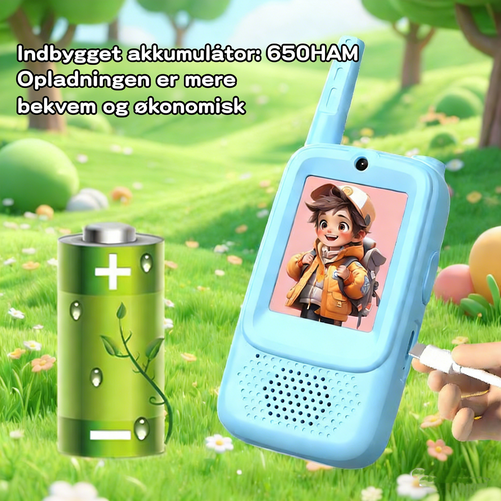 • Walkie Talkie Kids Rechargeable: Our walkie talkies are equipped with built-in rechargeable 650 mAh lithium-ion batteries and a USB Type-C charging cable, which can be used for 2-2.5 hours with full charge and up to 7 days standby. Compared to AAA batteries, the rechargeable Li-ion battery is safer, more economical and durable, and can be charged anytime and anywhere.