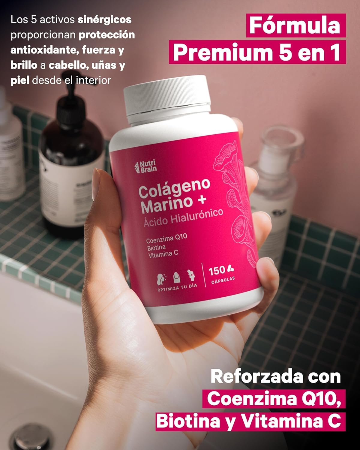 Piel Radiante, Articulaciones Flexibles y Cabello y Uñas Fuertes | Colágeno Marino + Ácido Hialurónico de NutriBrain