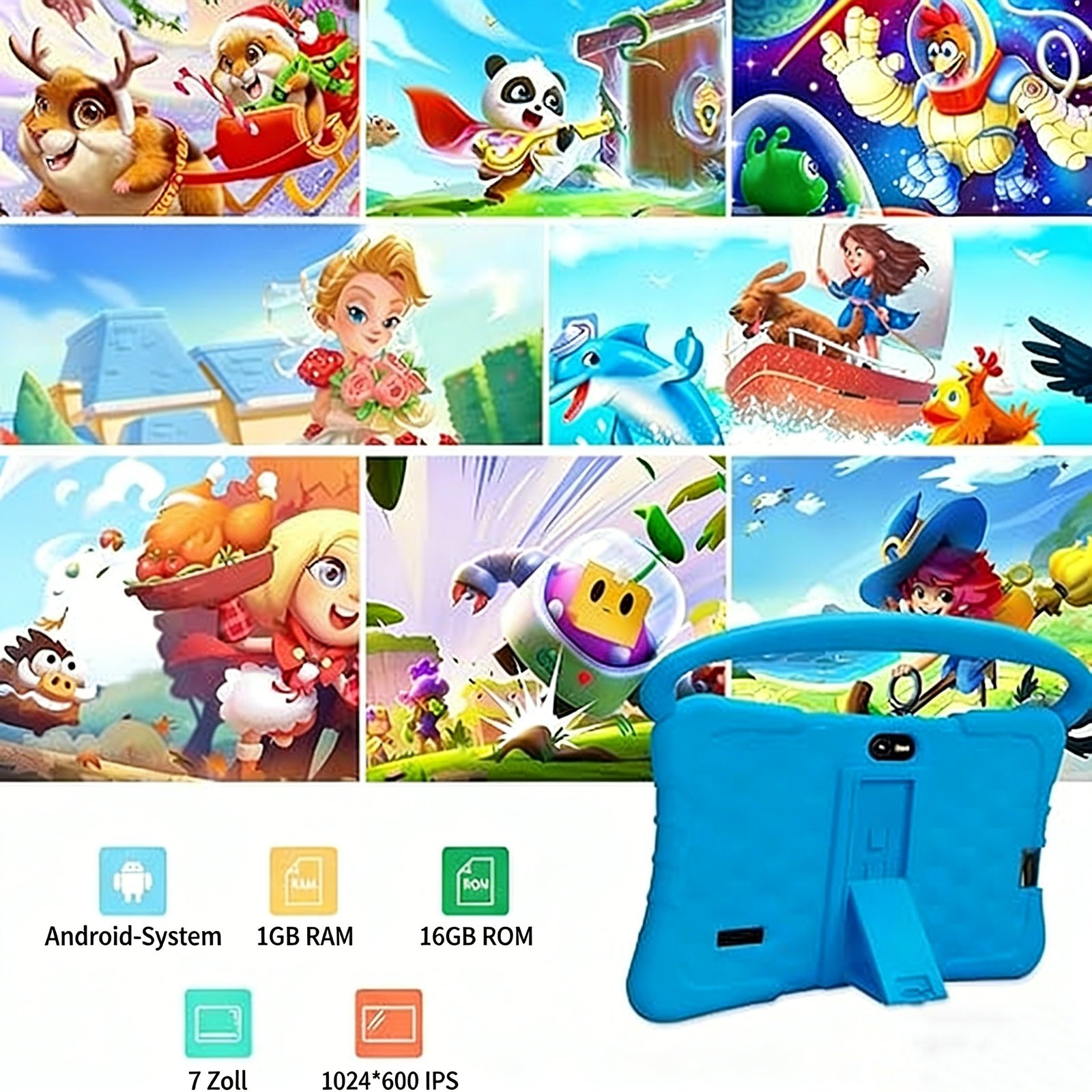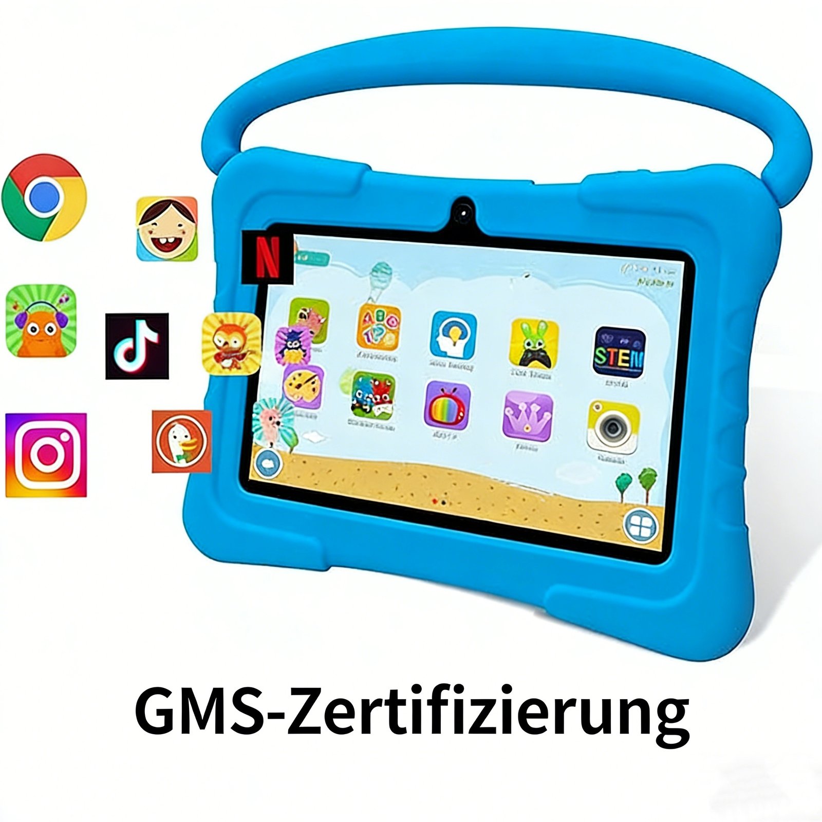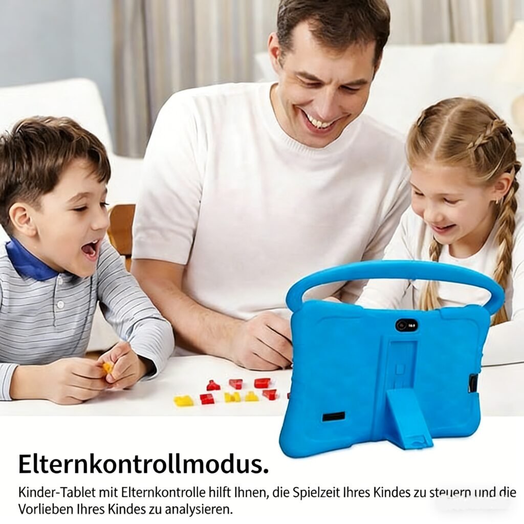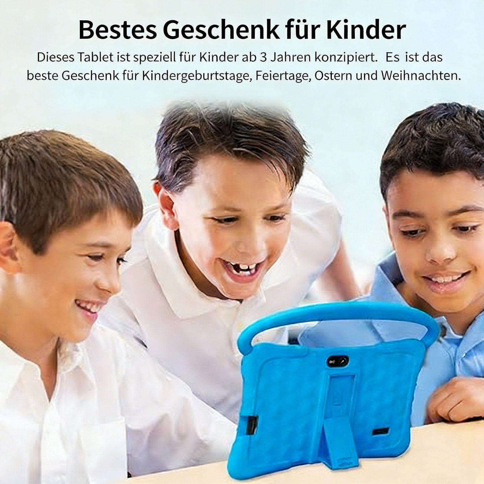 PRITOM K7 7 Zoll Android-Tablet mit Silikon-Gehäuse, Parental Control-Tablet mit Dual-Kamera, Bildungstablet mit langlebigem Ständer und Griff für Zuhause, Schule