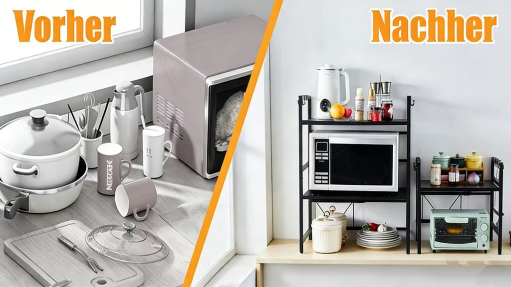 Regal Küchenarbeitsplattenregal Multifunktionsständer integrierte Halterung Elektrobackofen Aufbewahrungsregal Etagenregal