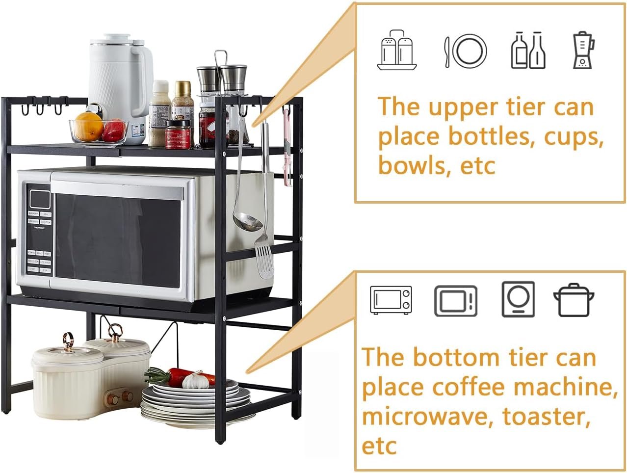 • EXPANDABLE DESIGN: Adjustable width microwave stand (38.2-63cm) that expands to accommodate different sizes of appliances whilst maximising counter space utilisation