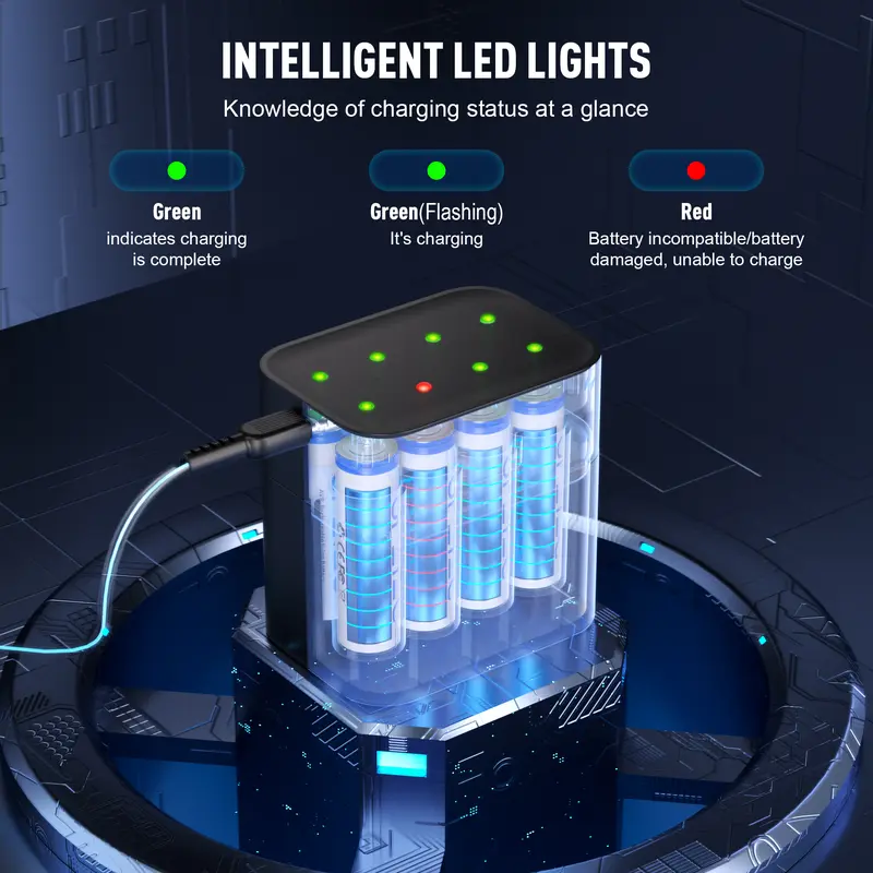 • 2.5 Hour Fast Charging: Equipped with a “smart charge” function that measures the voltage and temperature of the battery while charging, reducing unnecessary charging. Each battery comes with a green LED light to see the charging status. In addition, it can be charged quickly. 1 to 8 bottles will be charged in about 2.5 hours