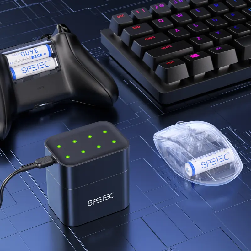 SPELEC 3600mWh Compatible con pilas de litio AA 8 pack con cargador rápido, batería recargable 1.5V de larga duración de gran capacidad pack de baterías AA Smart Charging Dock con indicador LED