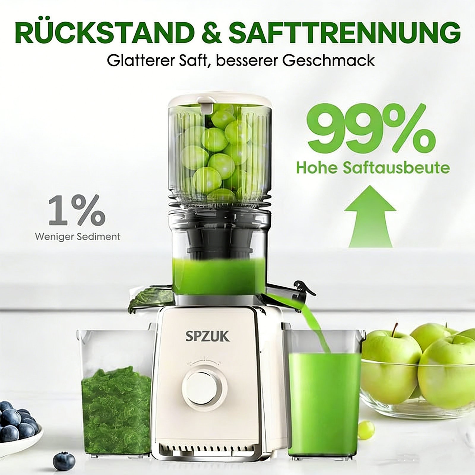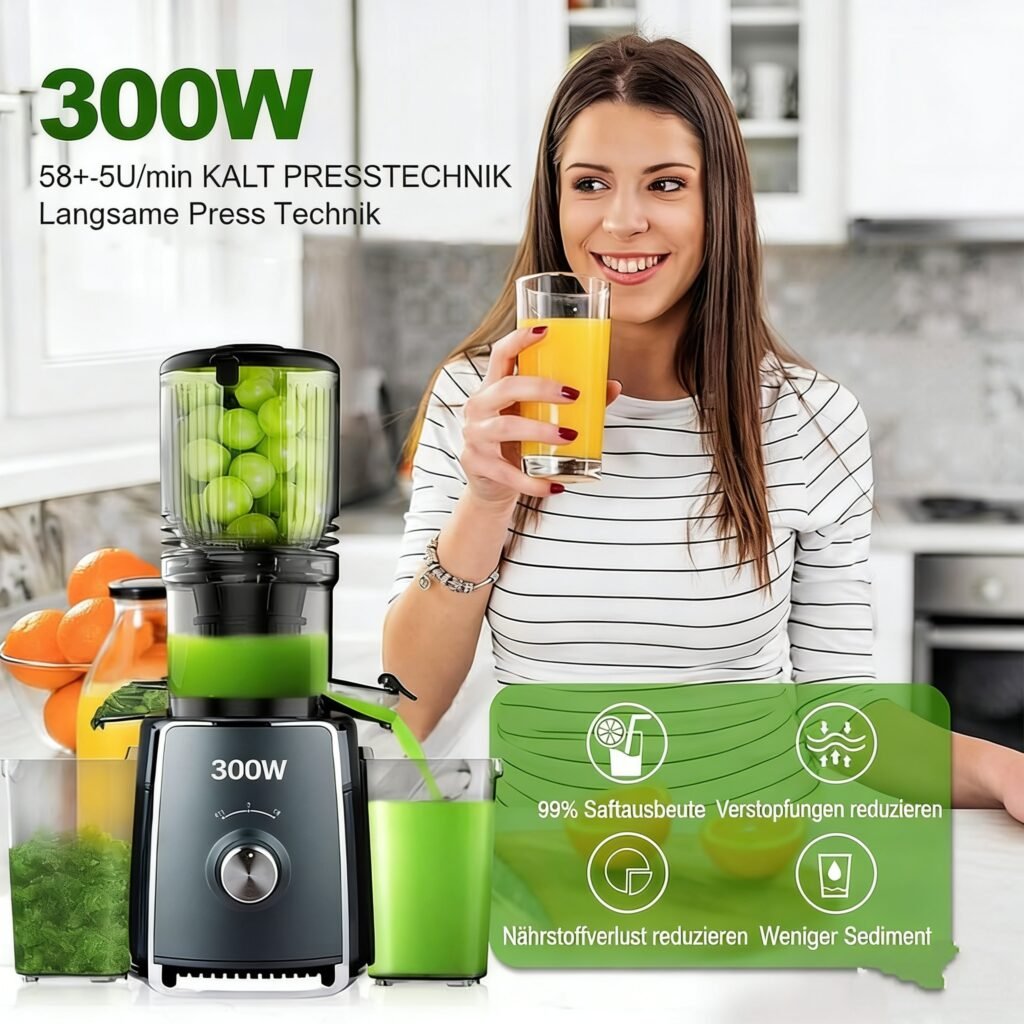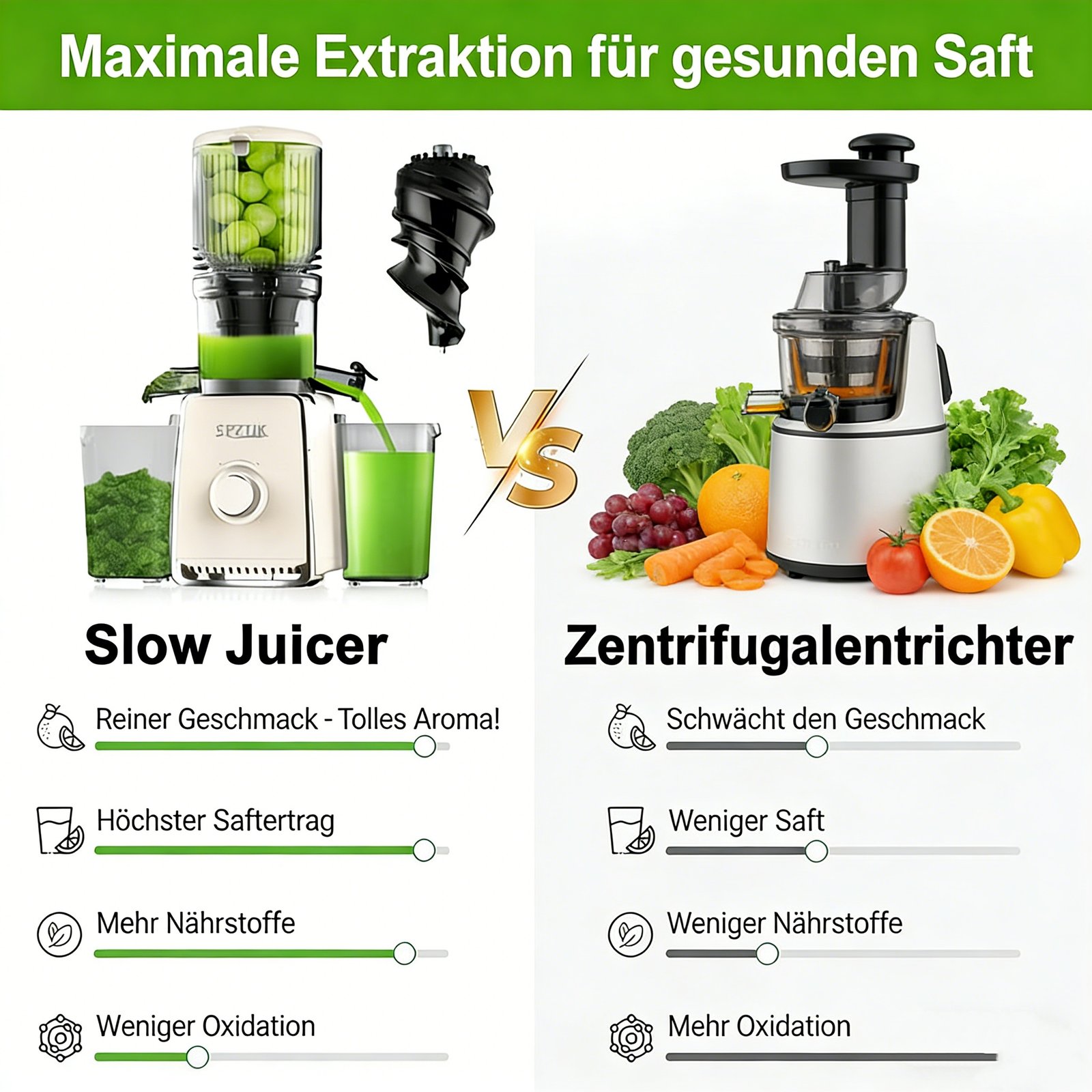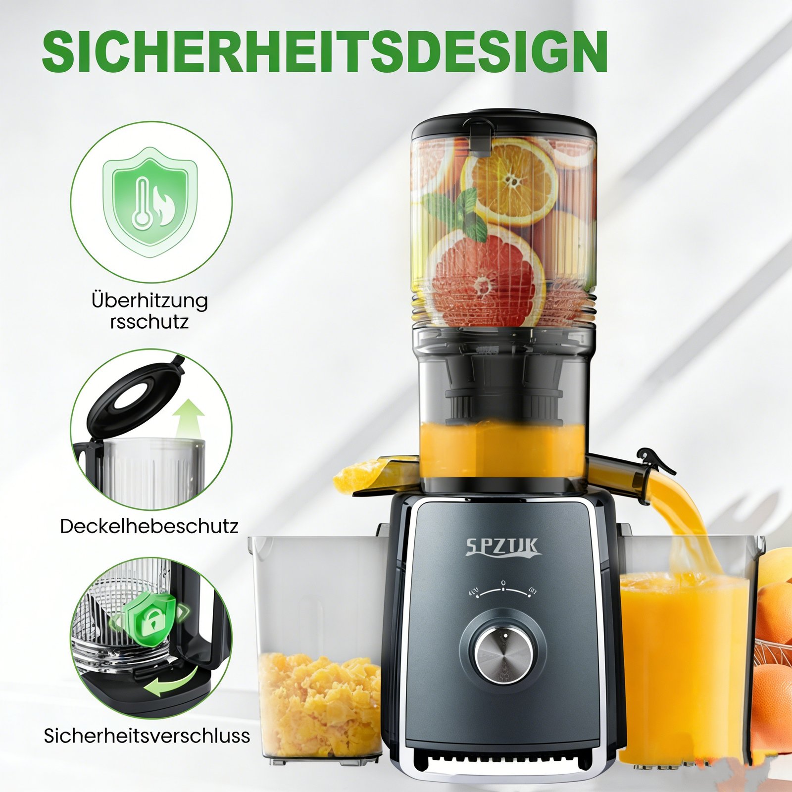 SPZTJK Kaltpress-Entsafter mit 5,3 Zoll großem Einfüllschacht, 300 W, professioneller Slow-Masticating-Entsafter für ganzes Gemüse und Obst, leicht zu reinigen für Batch-Entsaftung
