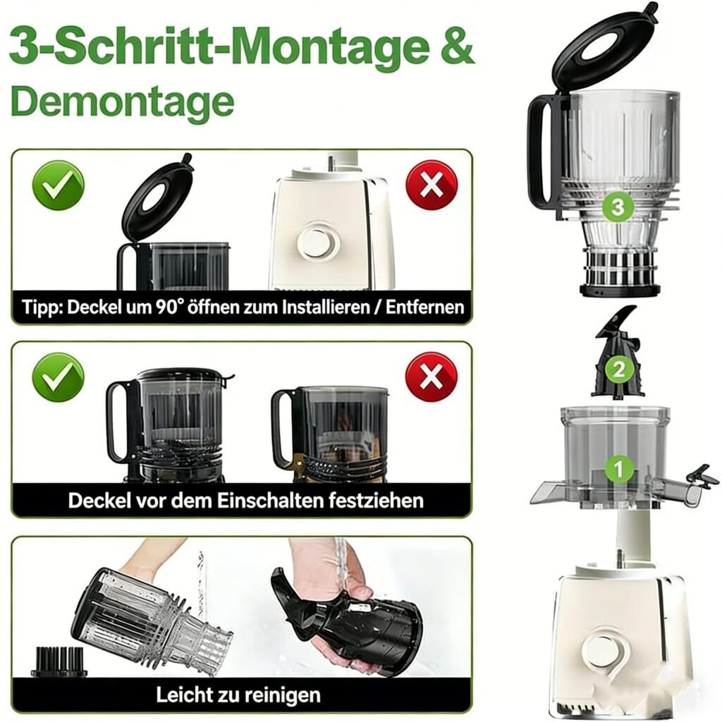 • 【 Anti-blocking and reverse function】If there is a blockage during the juicing process, just turn the reverse button, and the reverse button will rotate in reverse to remove all the blockage and ensure uninterrupted juicing.