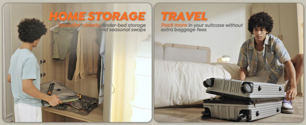 Be the first to review “Turbo X8 Premium-bolsa redondeada de compresión manos libres, diseño transparente y transparente de 5Kpa, compresión de alta eficiencia, inalámbrica y recargable, diseño semitransparente ligero y portátil, tamaños de viaje personalizados”