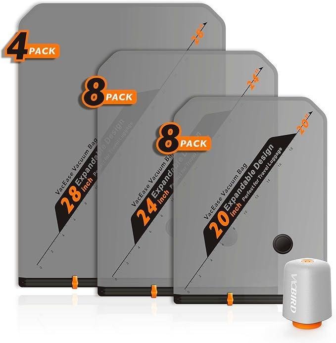 Turbo X8 Premium-bolsa redondeada de compresión manos libres, diseño transparente y transparente de 5Kpa, compresión de alta eficiencia, inalámbrica y recargable, diseño semitransparente ligero y portátil, tamaños de viaje personalizados